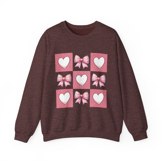 Hearts and Bows Unisex Heavy Blend Crewneck Sweatshirt - Valentine's Day Pattern