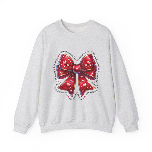 Bow Unisex Heavy Blend Crewneck Sweatshirt - Valentine's Day Warm & Cozy Girly Design