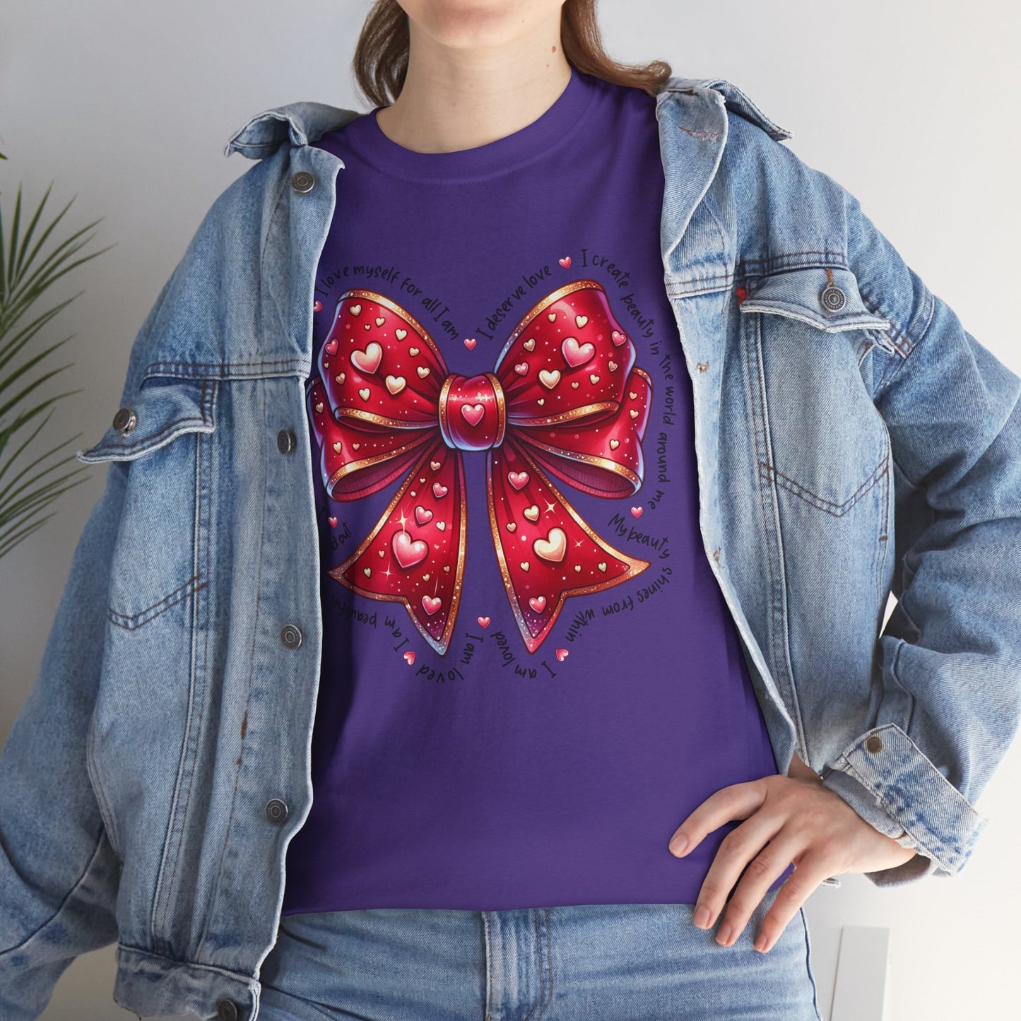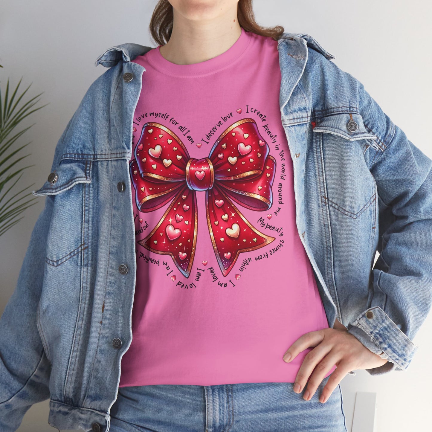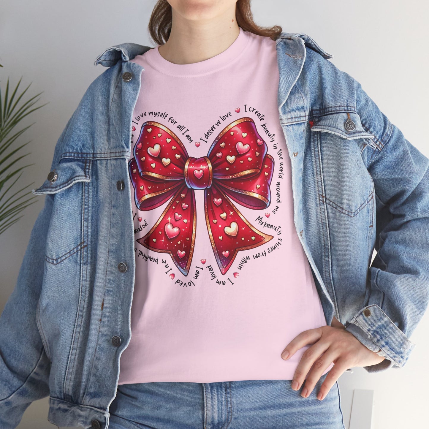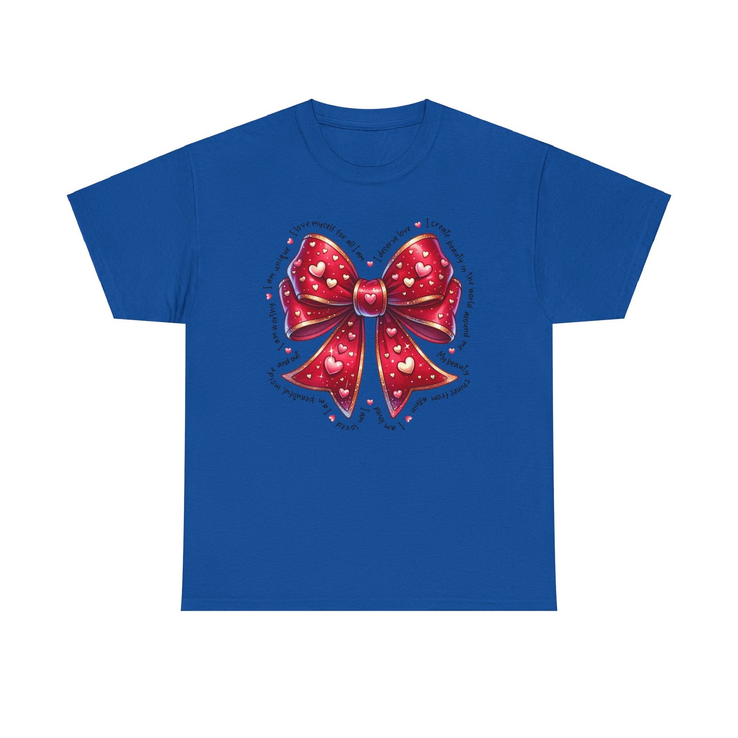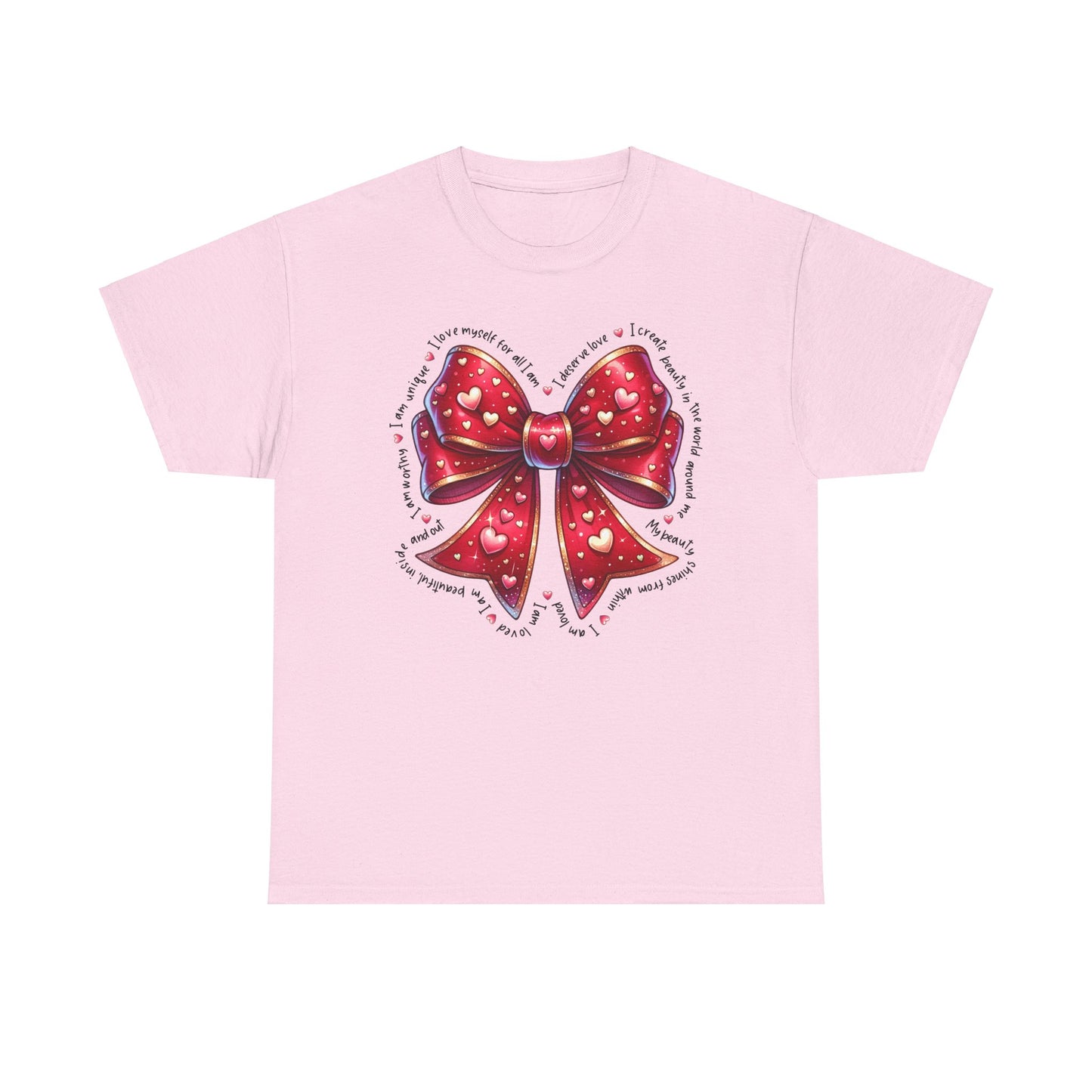 Bow Unisex Heavy Cotton Tee - Valentine's Day, Fun and Inspiring Girly Design