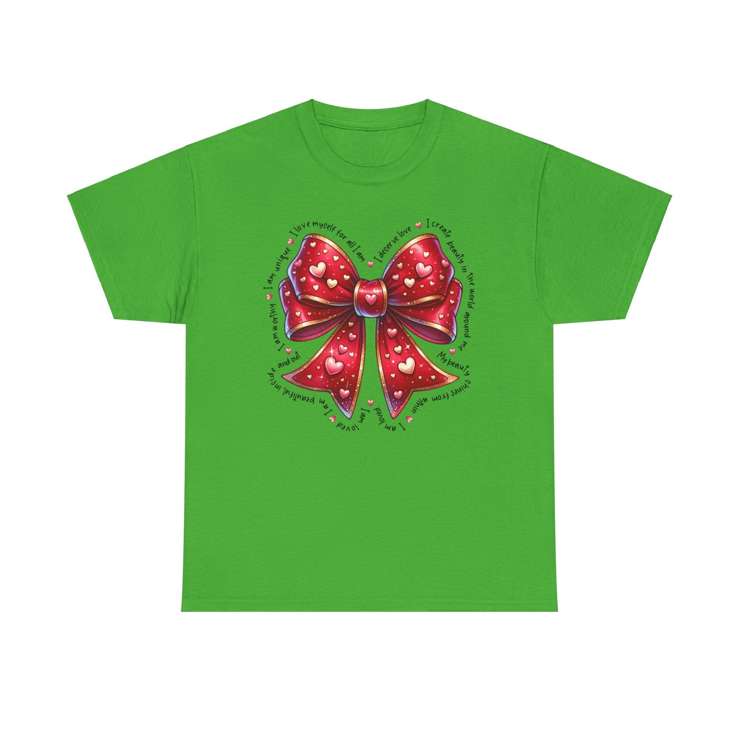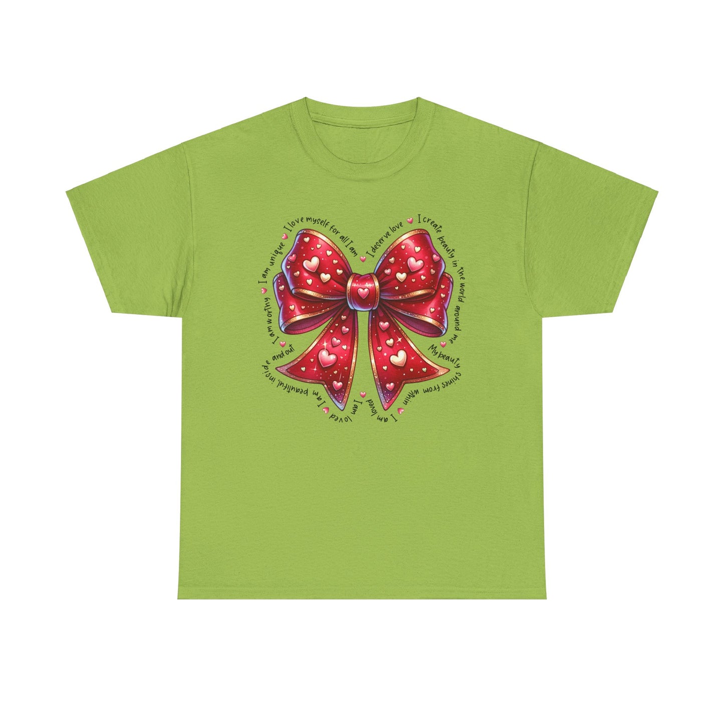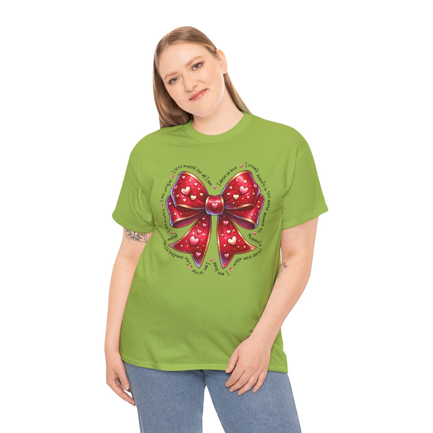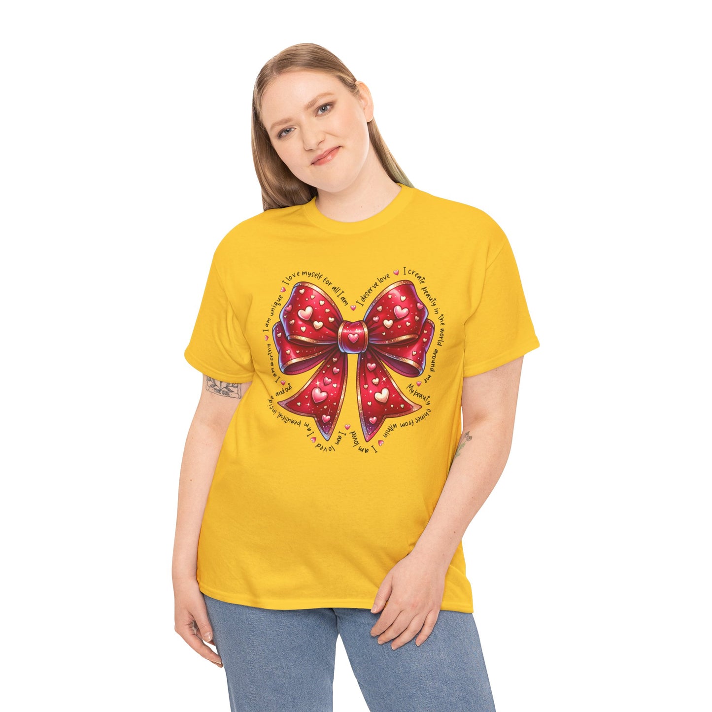 Bow Unisex Heavy Cotton Tee - Valentine's Day, Fun and Inspiring Girly Design