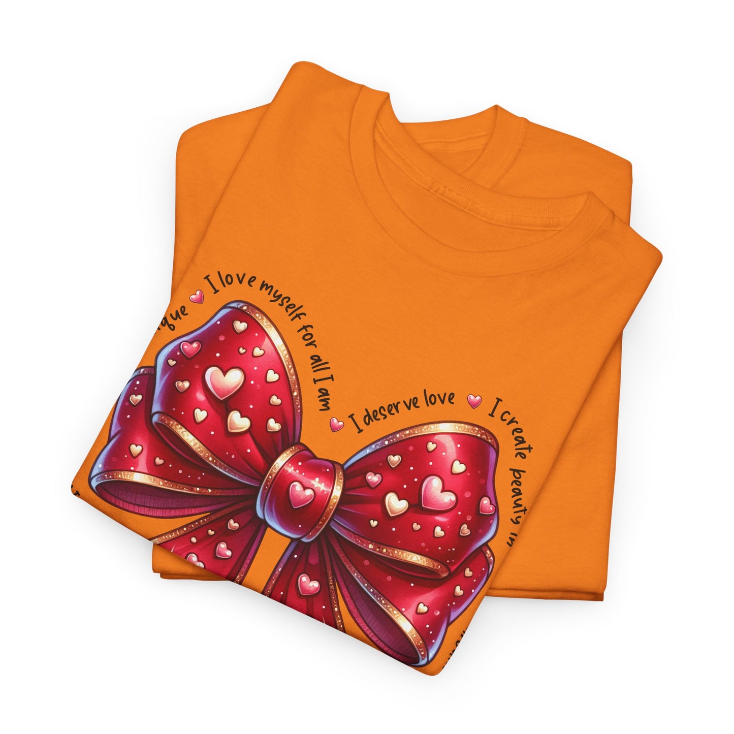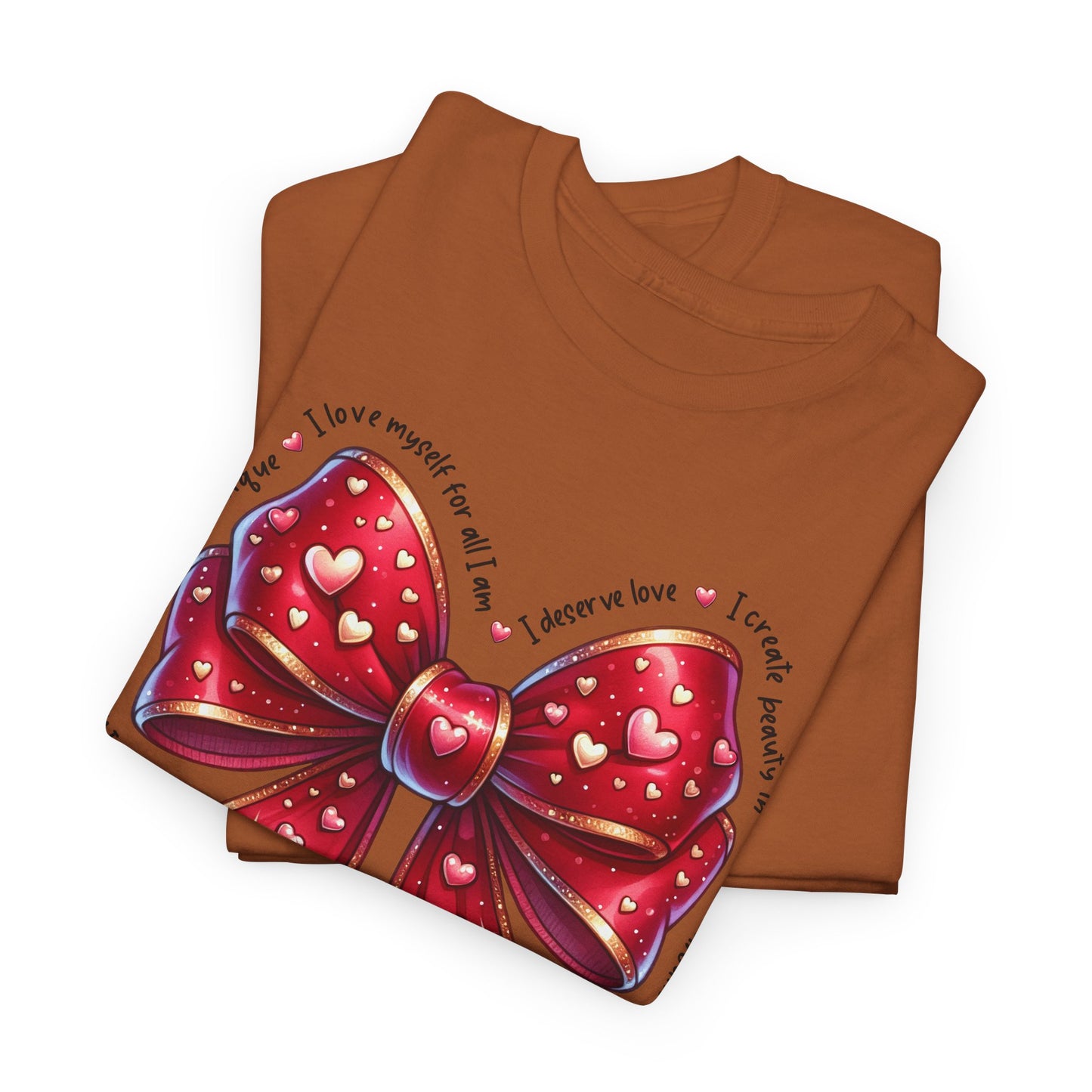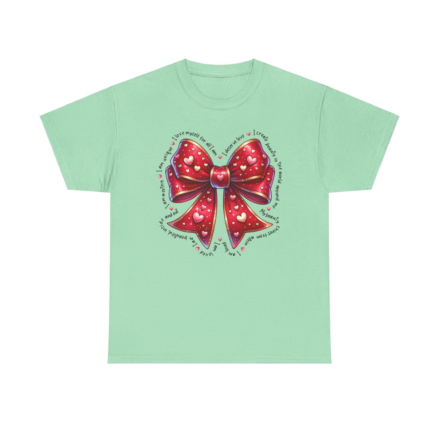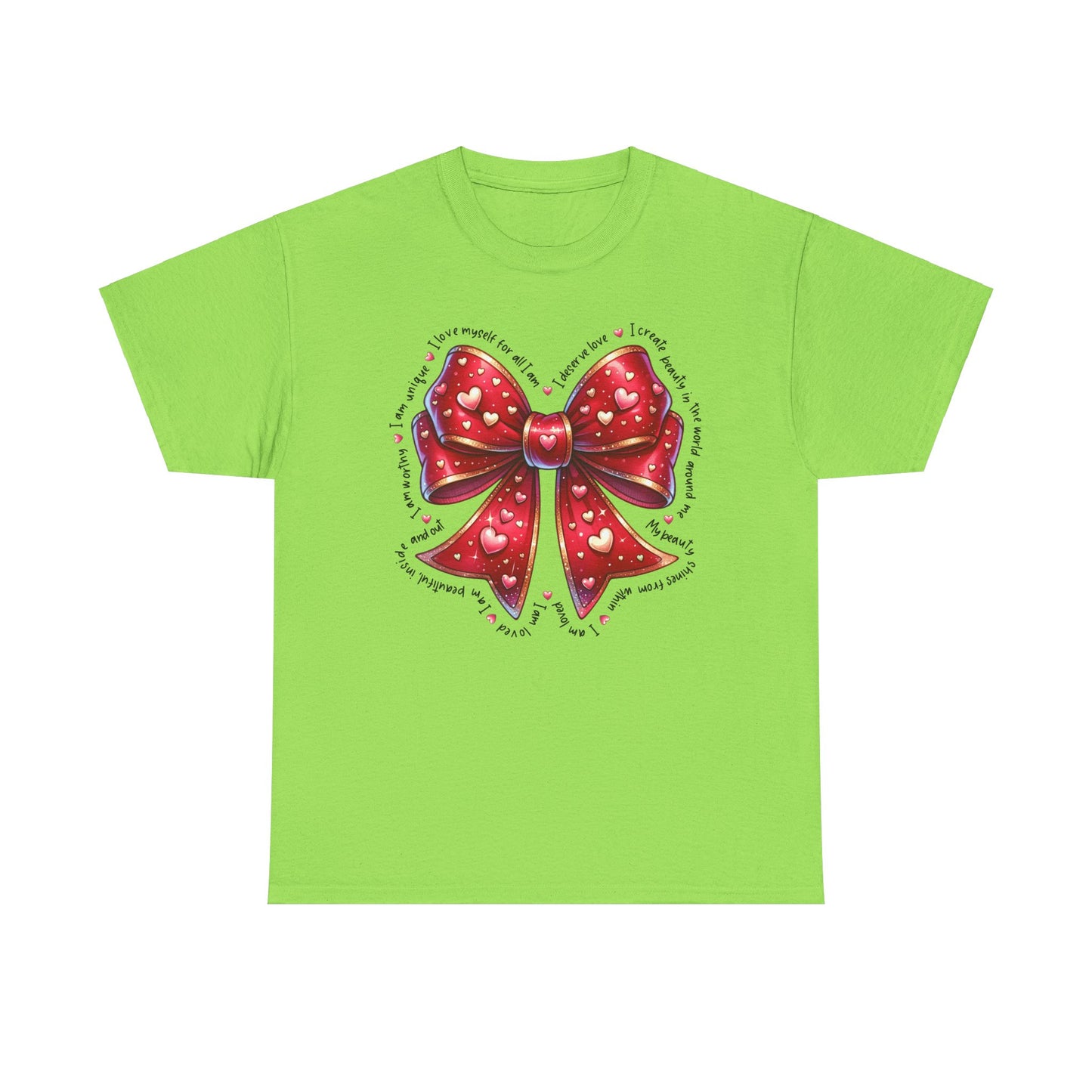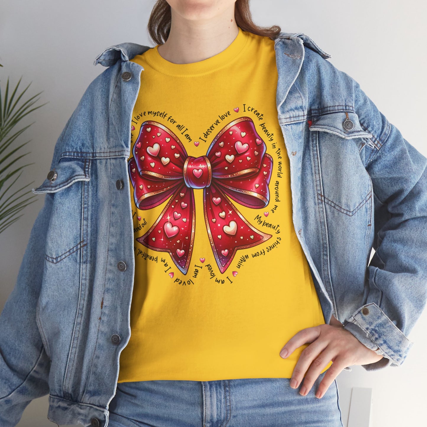 Bow Unisex Heavy Cotton Tee - Valentine's Day, Fun and Inspiring Girly Design