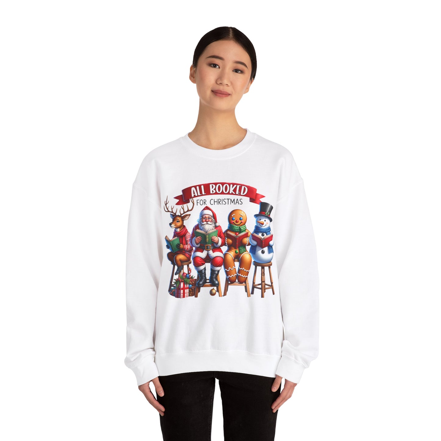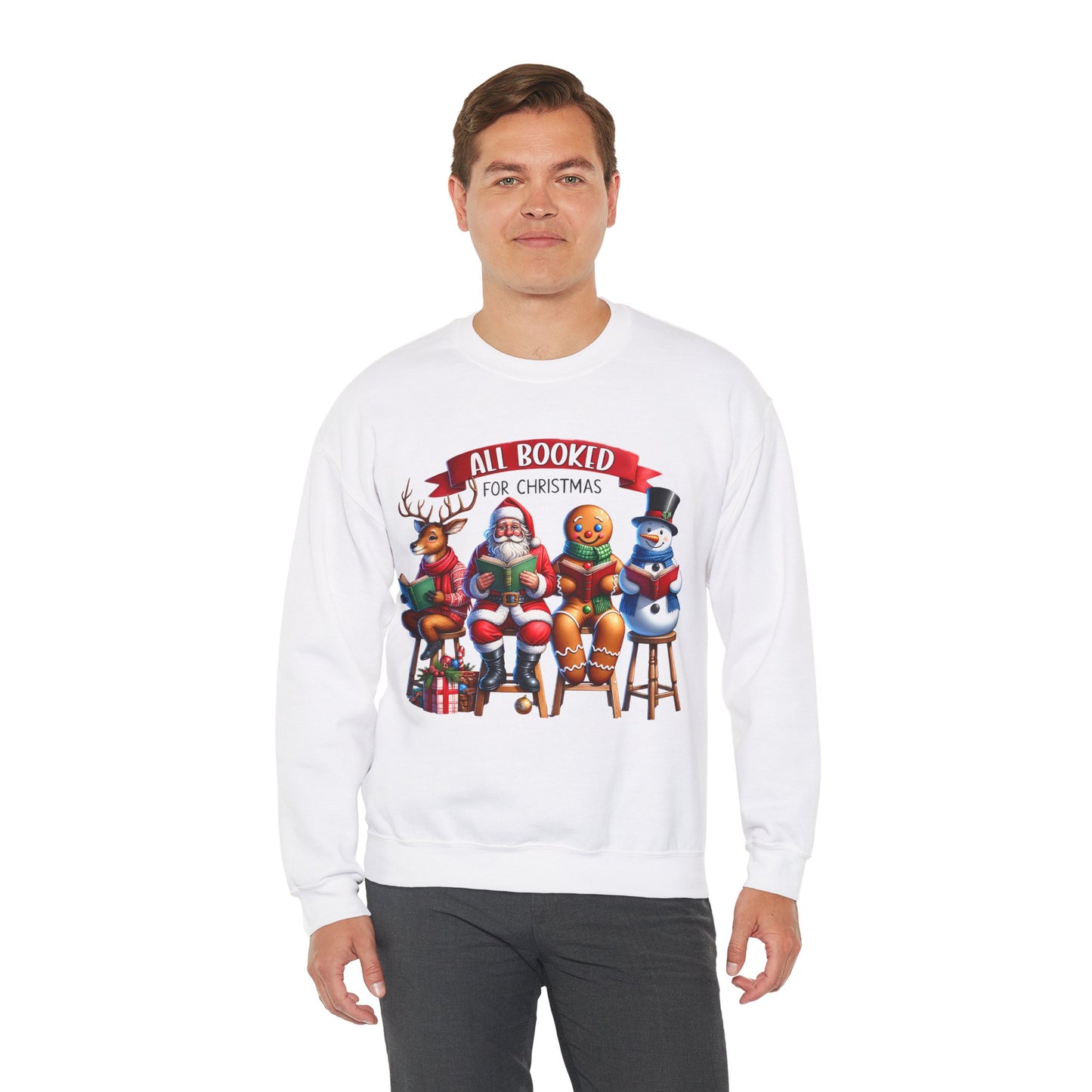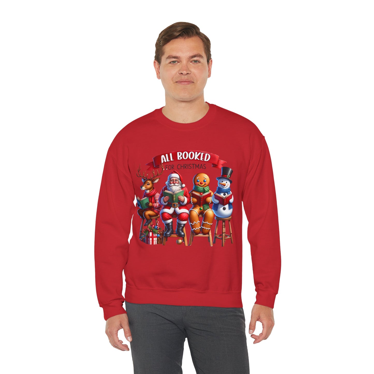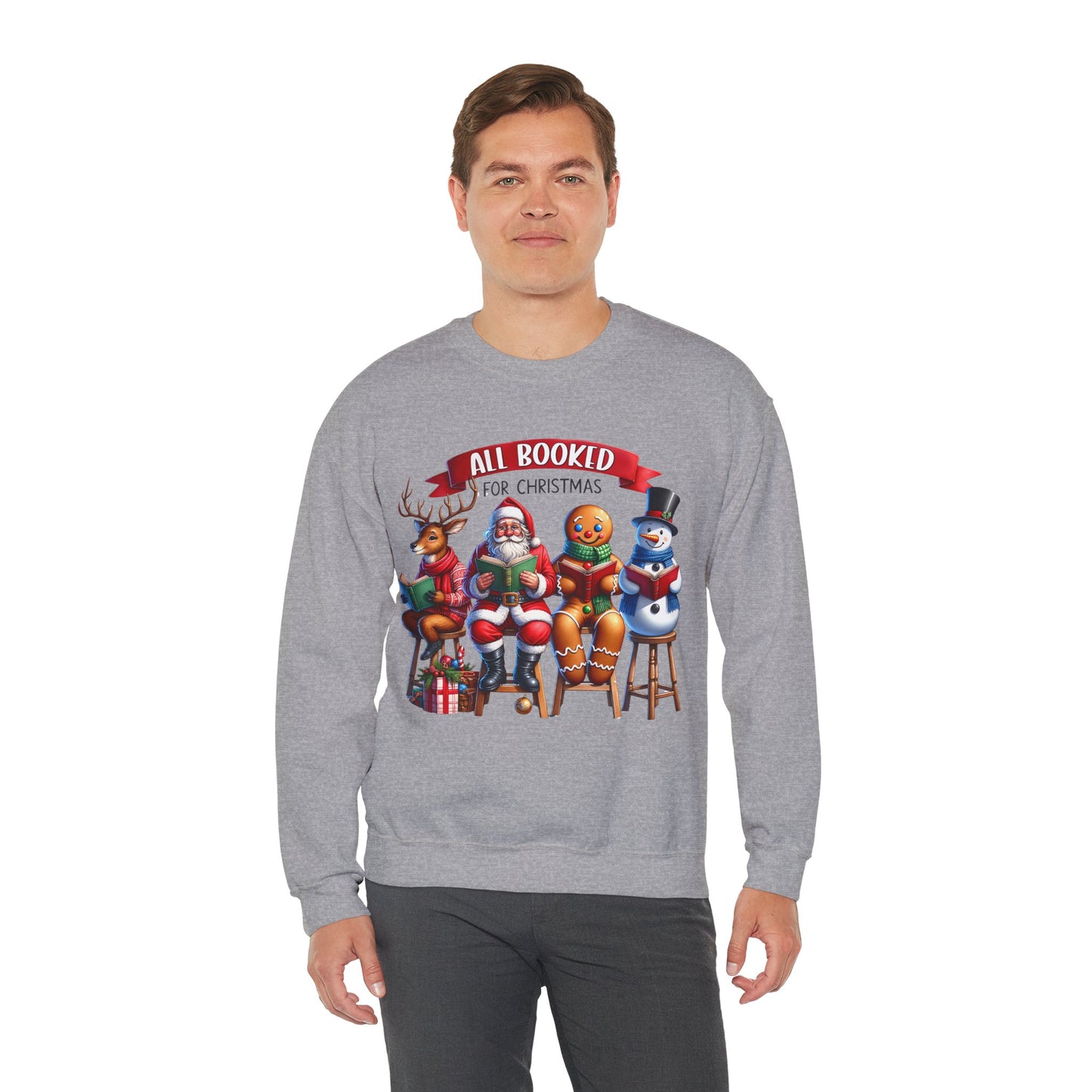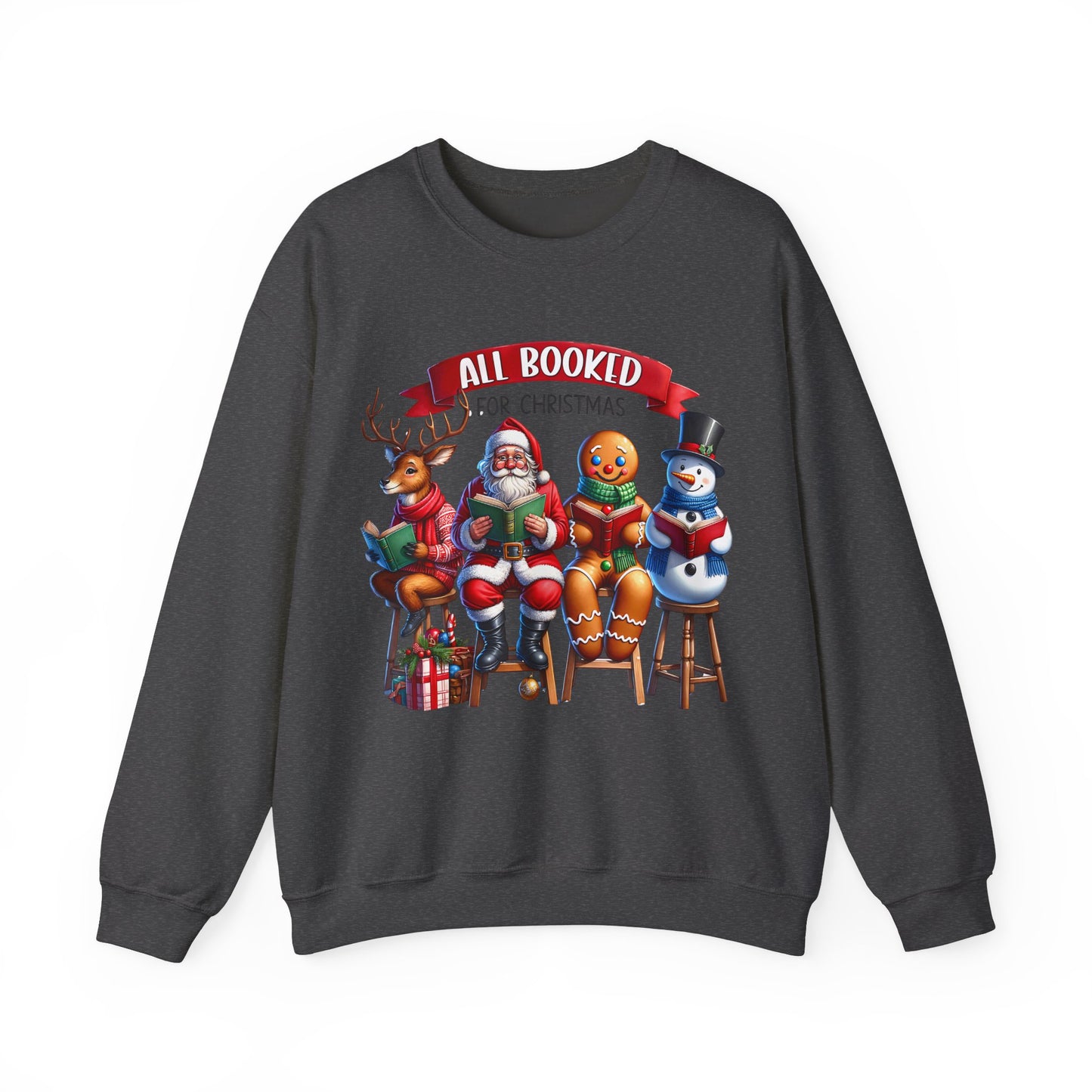 Stay warm and cozy this holiday season with the All Booked for Christmas Unisex Heavy Blend Crewneck Sweatshirt. This funny and whimsical sweatshirt exudes a warm and cozy vibe, perfect for lounging by the fireplace or attending a holiday party. The classic fit and medium-heavy fabric blend of cotton and polyester make it a comfortable choice for colder months. Ideal for those who love festive and humorous holiday attire, this sweatshirt is perfect for Christmas and winter celebrations.