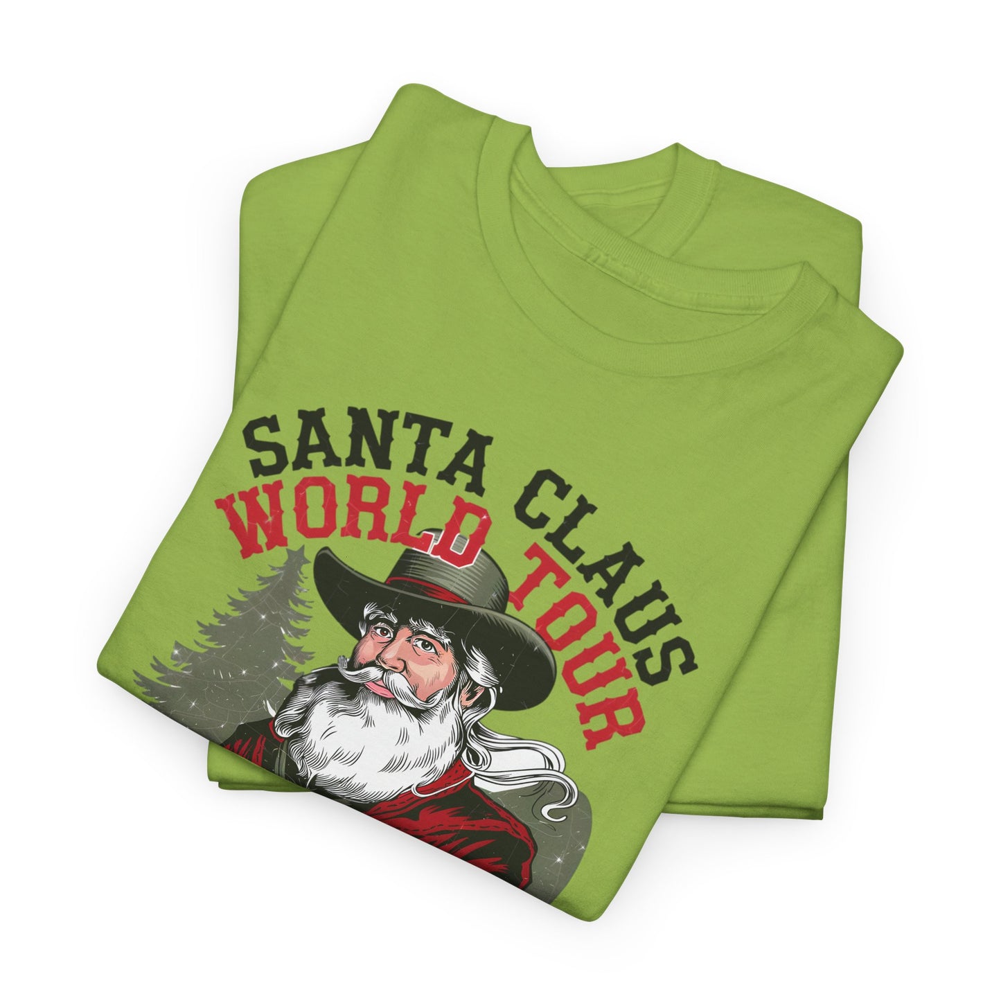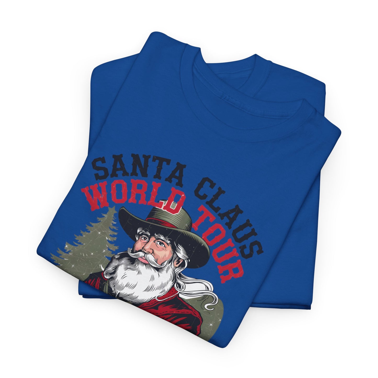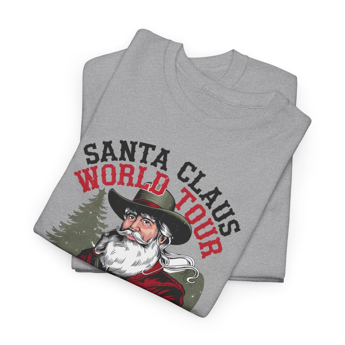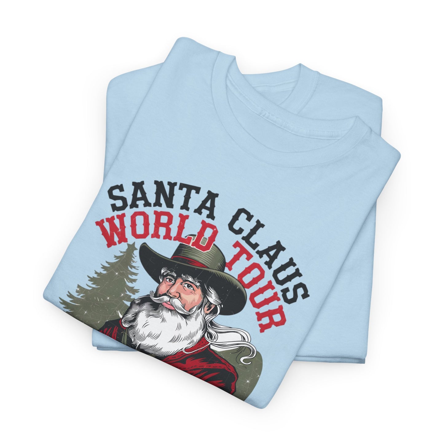 Cowboy Santa World Tour Unisex Heavy Cotton T-shirt - Christmas Funny Country Graphic Holiday Tee - sizes S - 5X