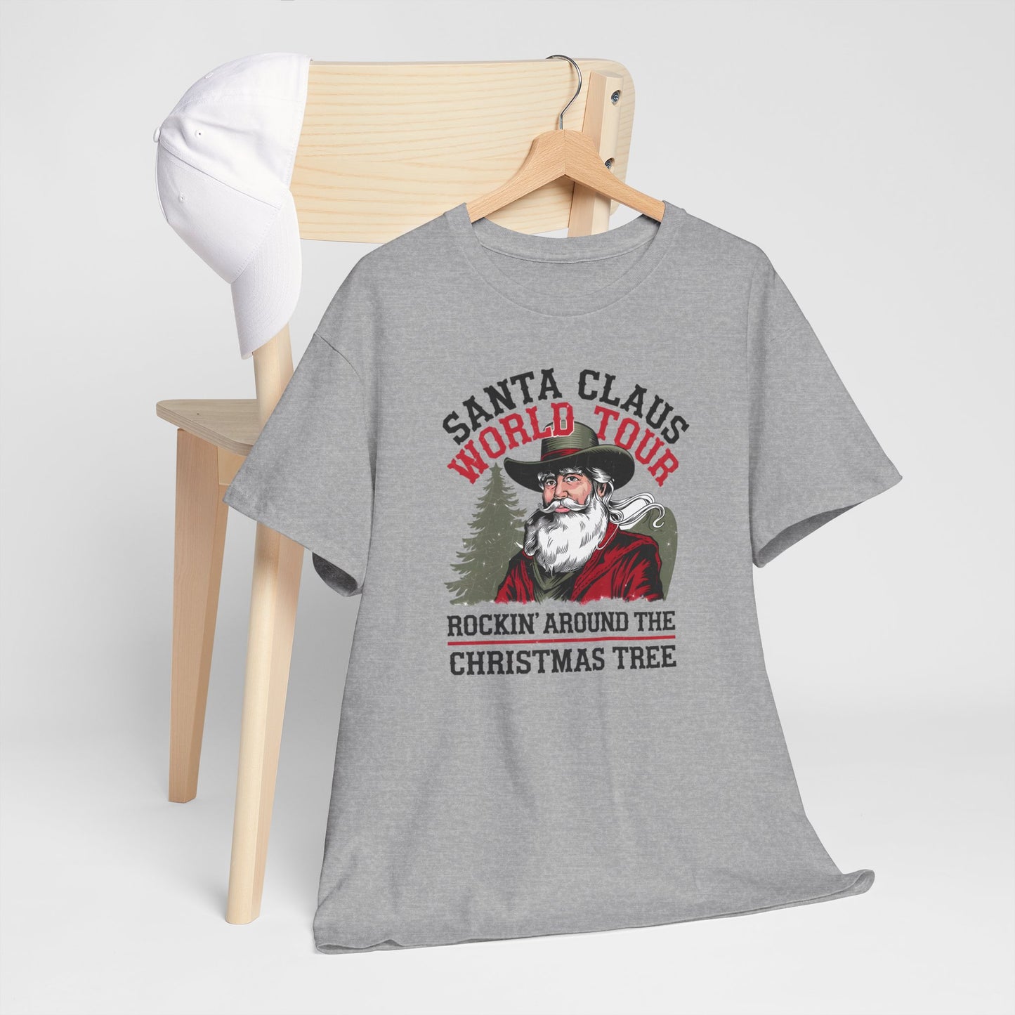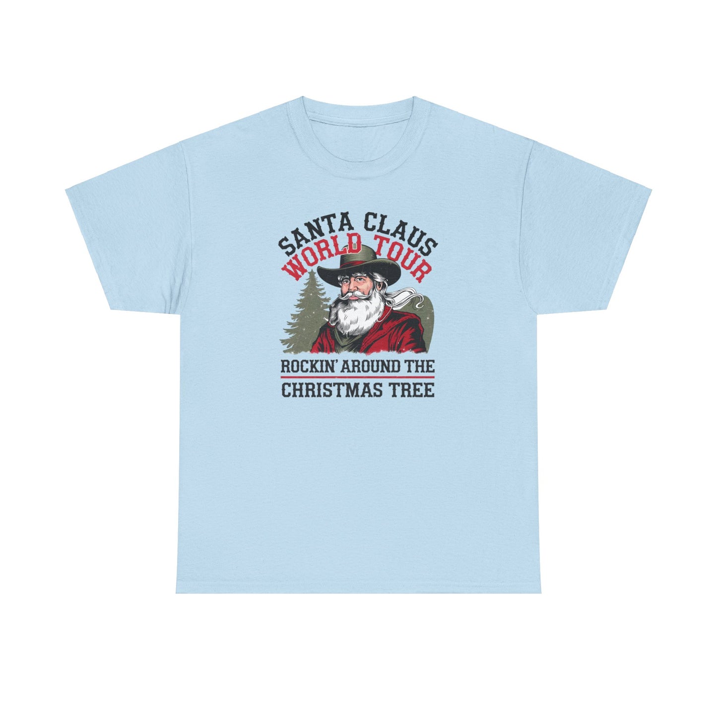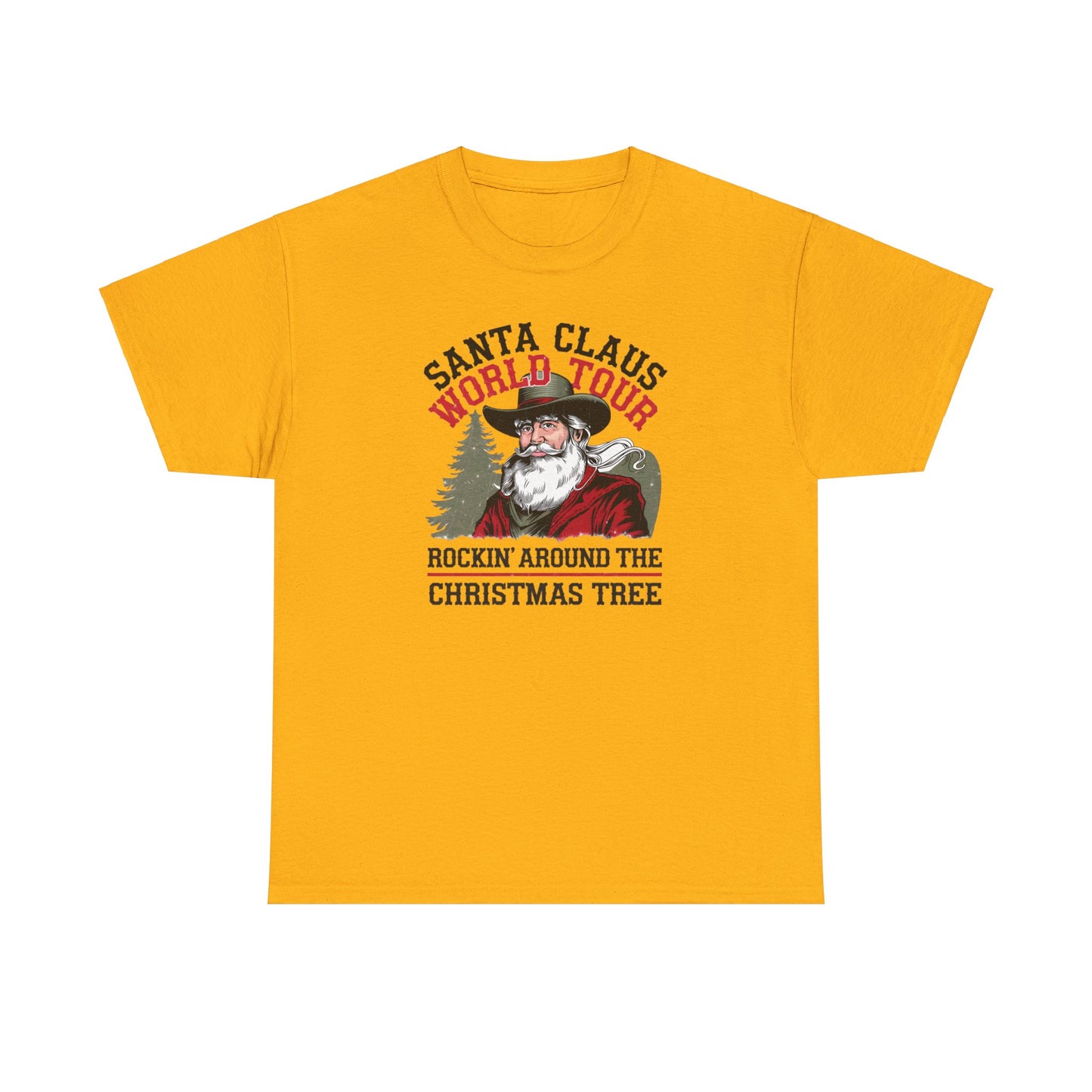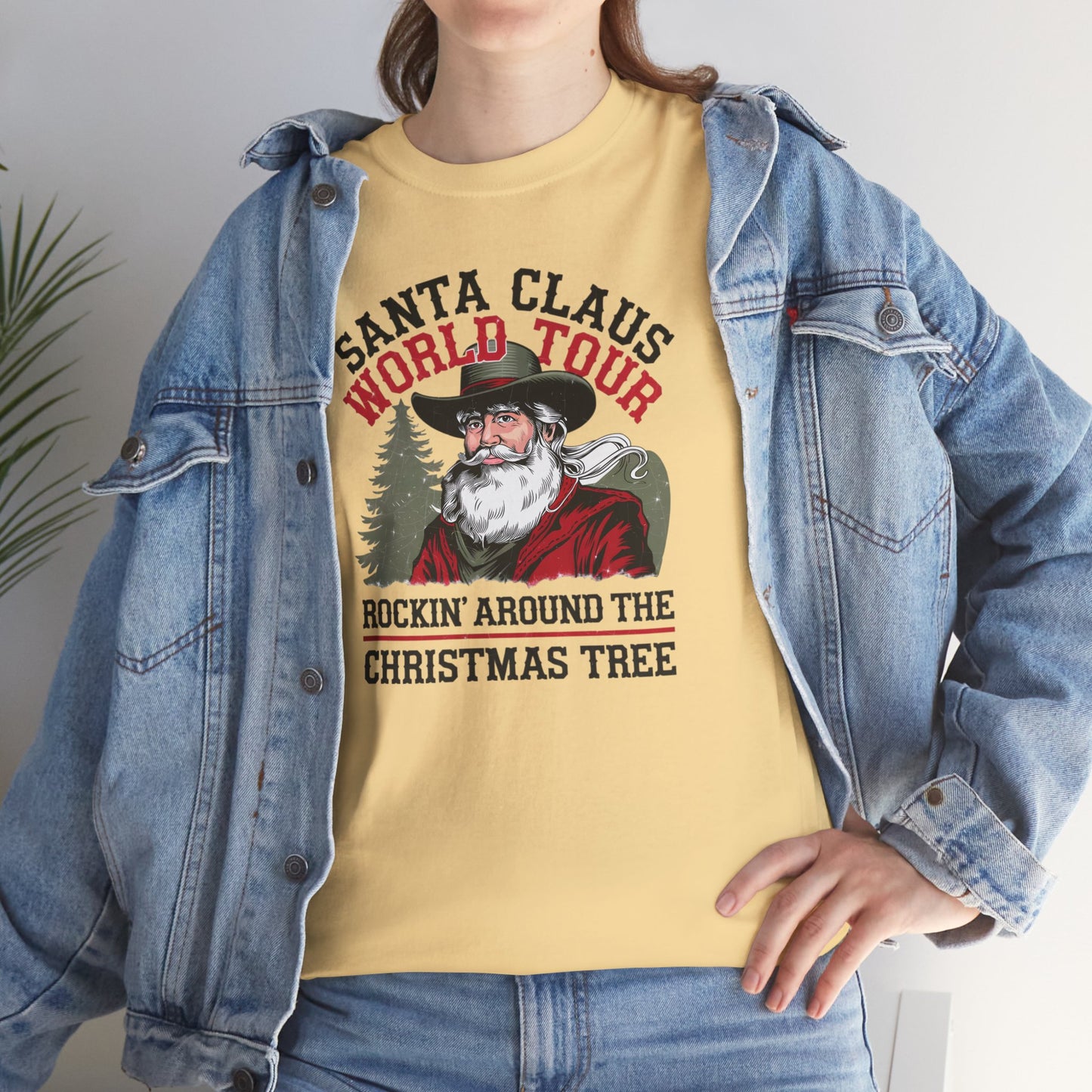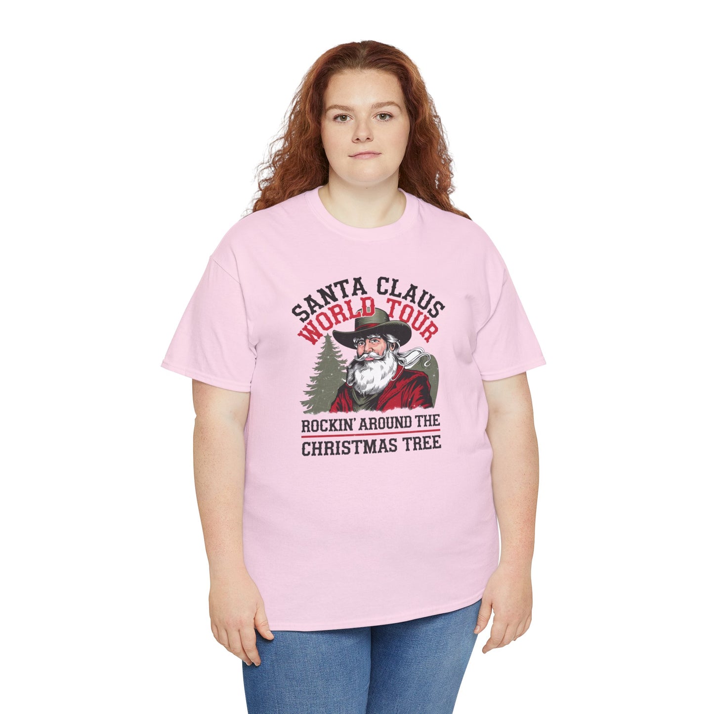 Cowboy Santa World Tour Unisex Heavy Cotton T-shirt - Christmas Funny Country Graphic Holiday Tee - sizes S - 5X