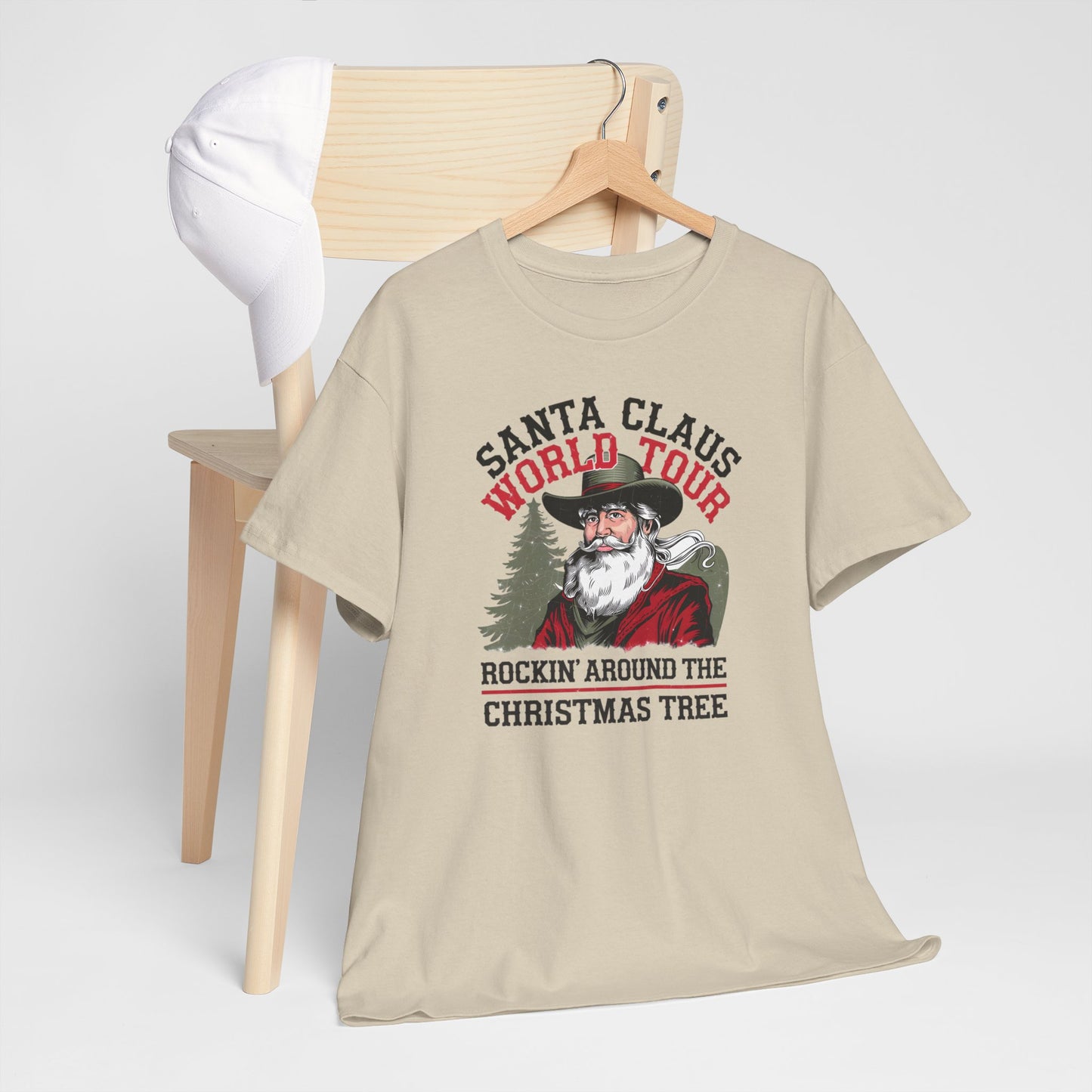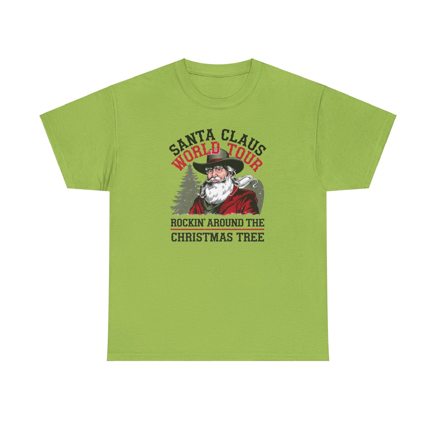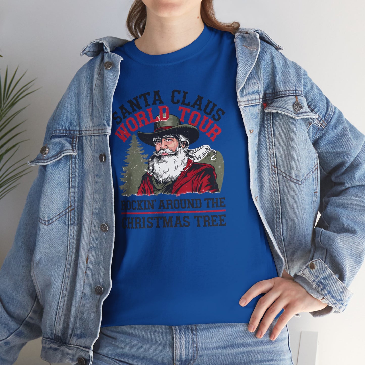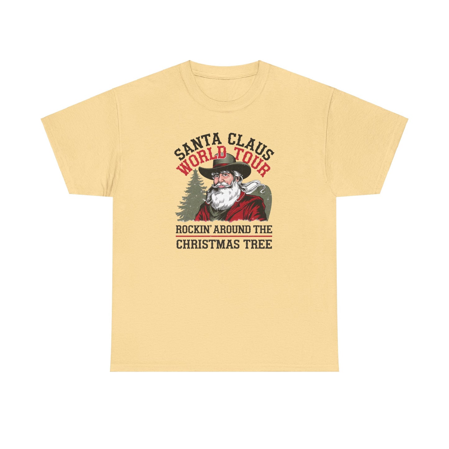 Cowboy Santa World Tour Unisex Heavy Cotton T-shirt - Christmas Funny Country Graphic Holiday Tee - sizes S - 5X