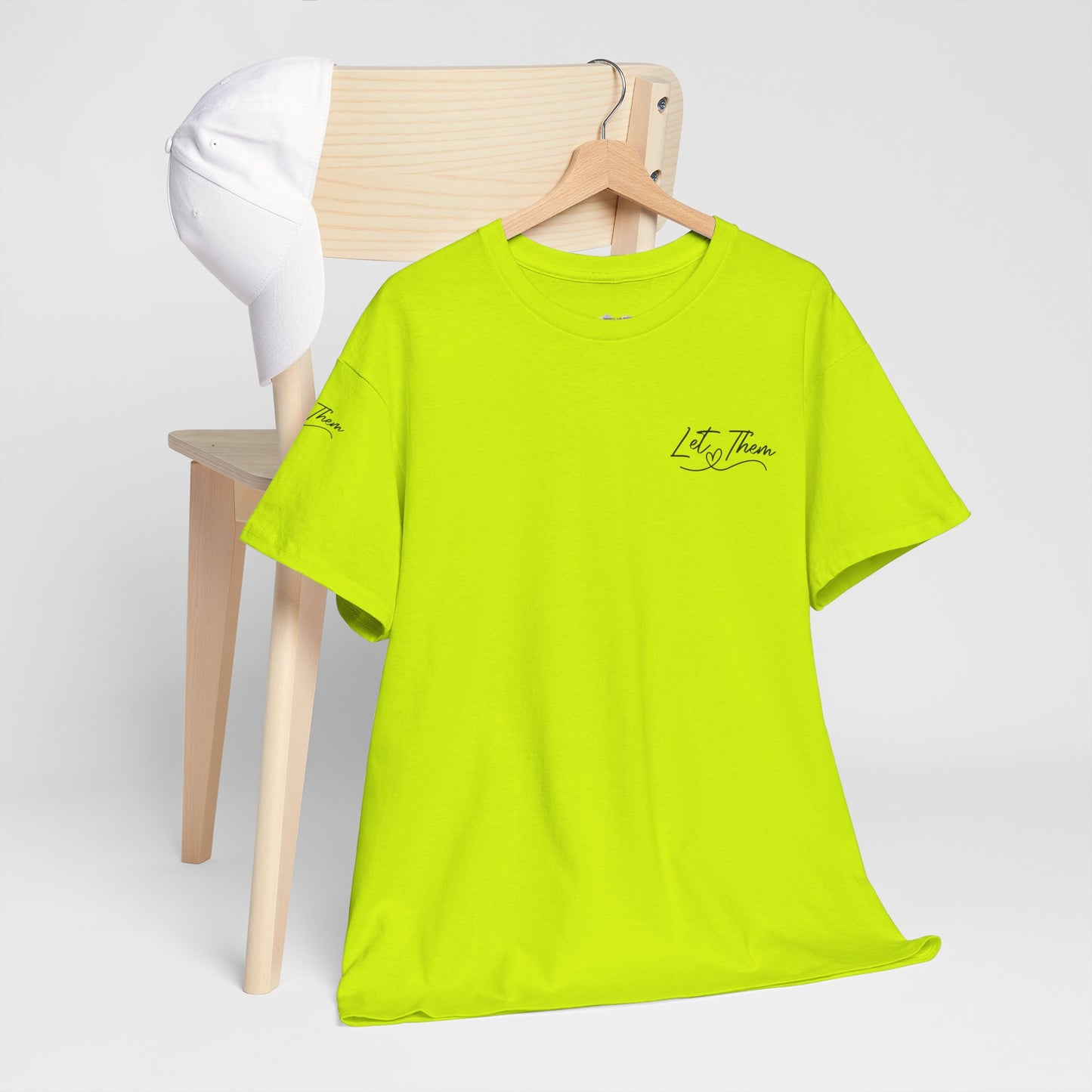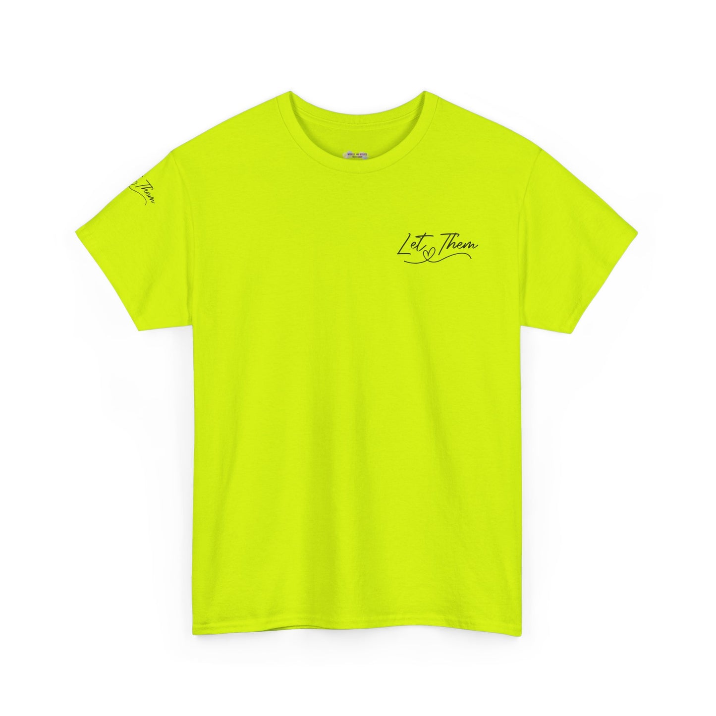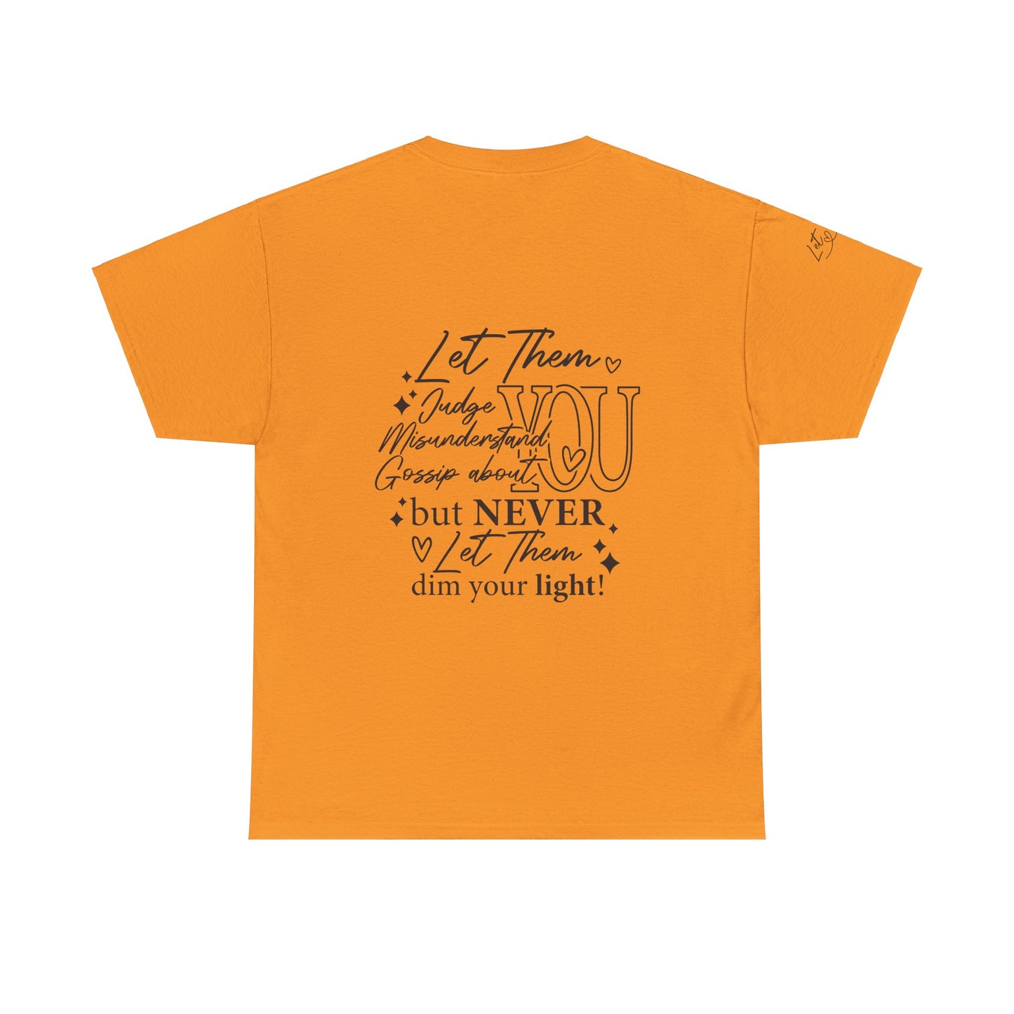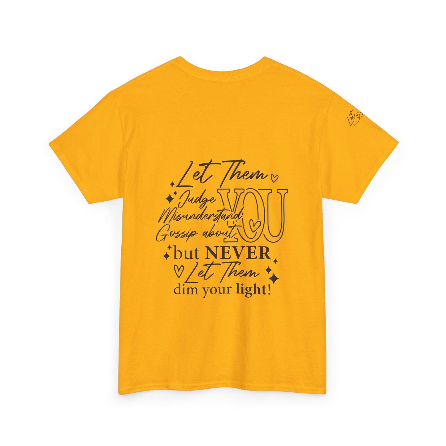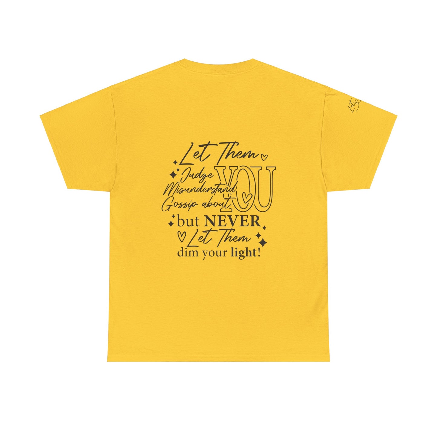 The "Let Them" tee is a cute and inspirational unisex heavy cotton tee featuring designs on the front, back, and right arm. This tee exudes a positive and uplifting vibe, making it perfect for everyday wear or as a thoughtful gift for someone special. Ideal for adults who appreciate unique and meaningful clothing pieces. Perfect for holidays, birthdays, and casual gatherings.
