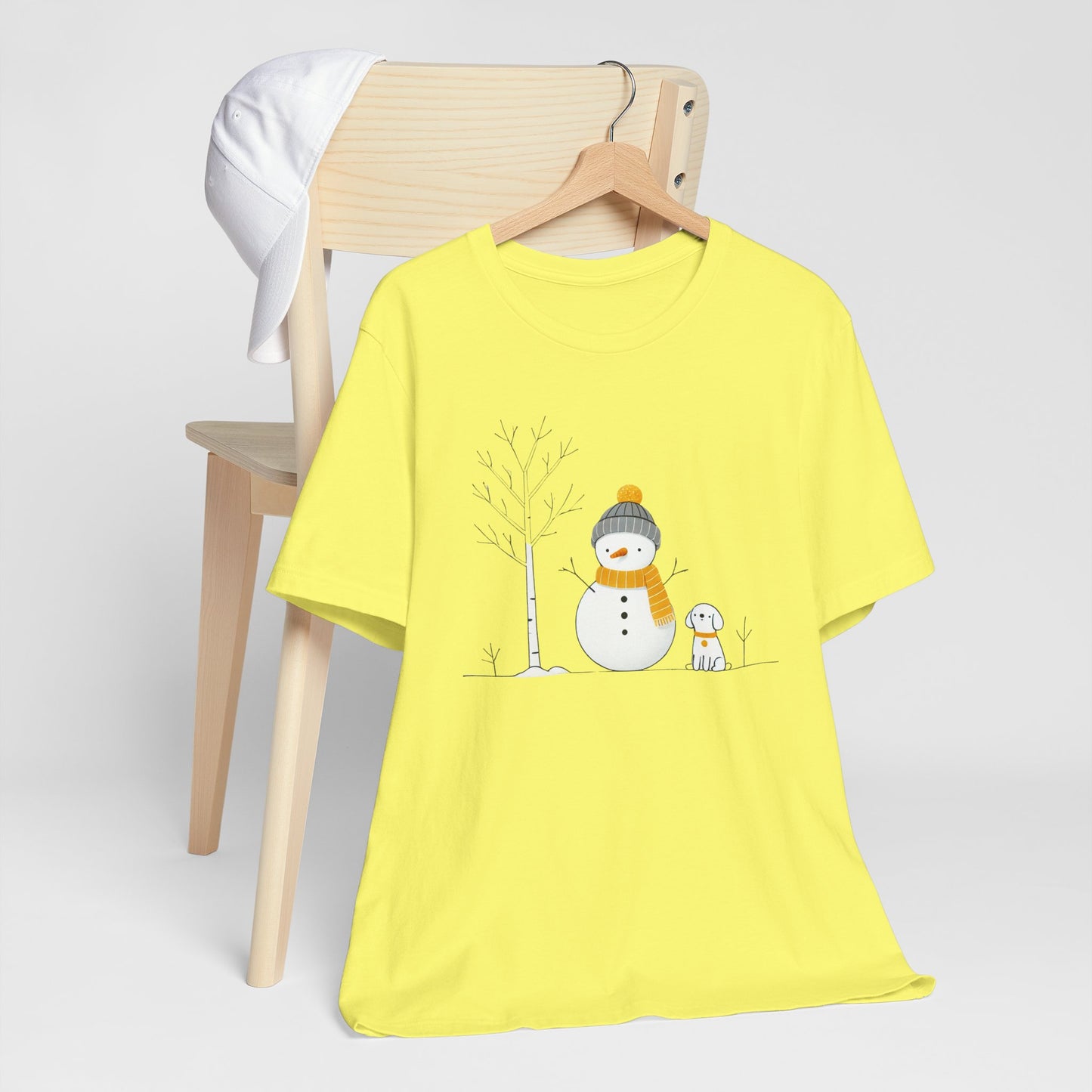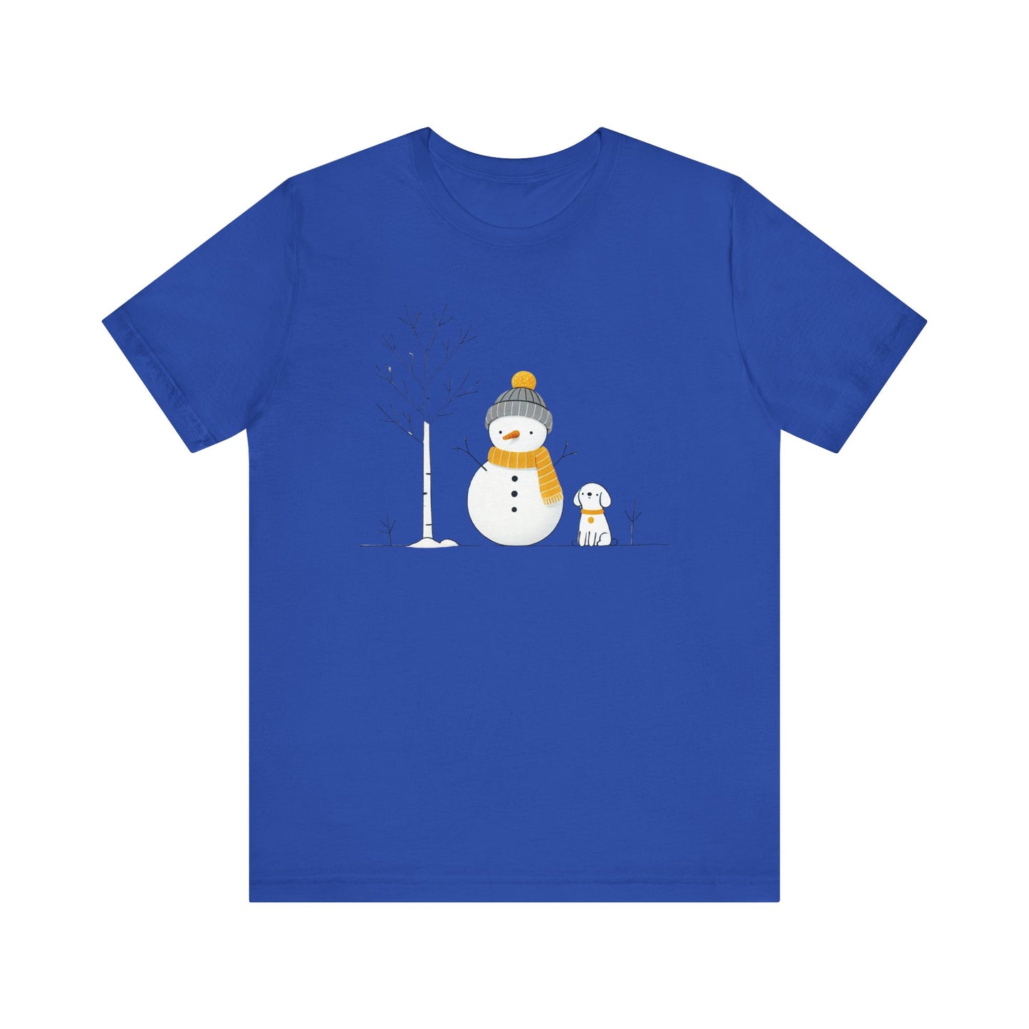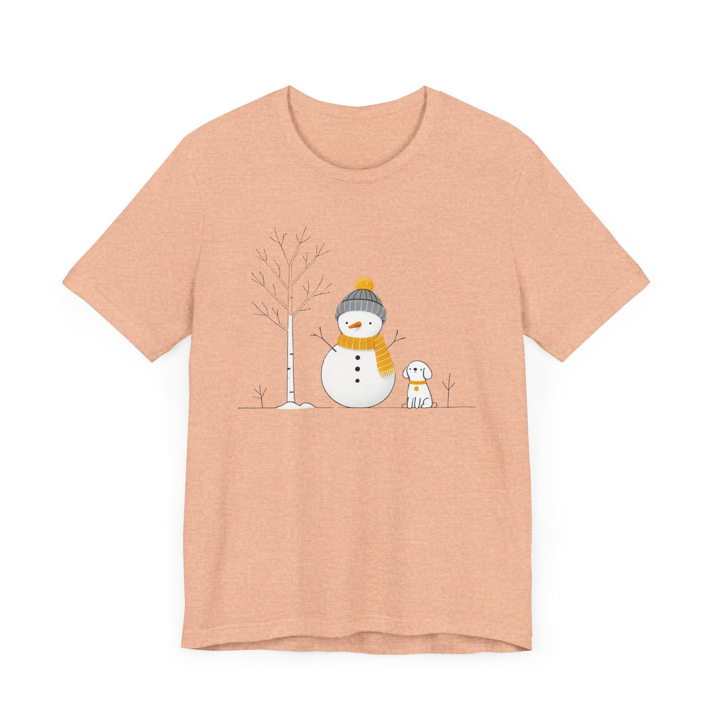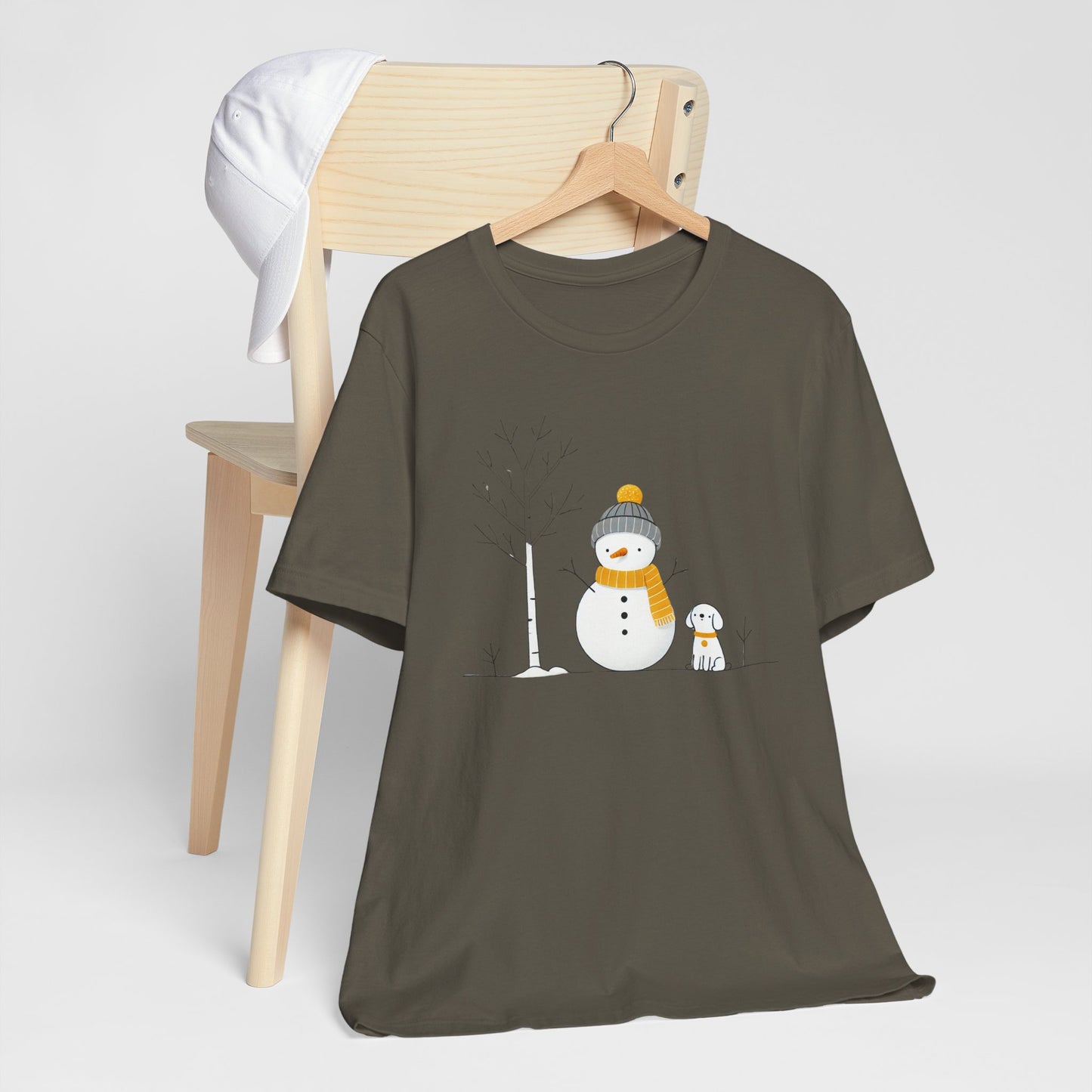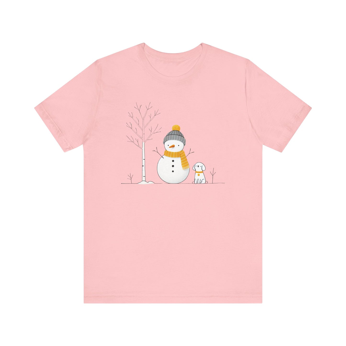 Stay cozy and cute with this Snowman and dog Unisex Jersey T-shirt. Perfect for winter days, this tee exudes a festive and playful vibe that is sure to brighten up your wardrobe. Ideal for those who love winter, dogs, and all things adorable, this tee is perfect for holiday gatherings, Christmas parties, and casual hangouts with friends.