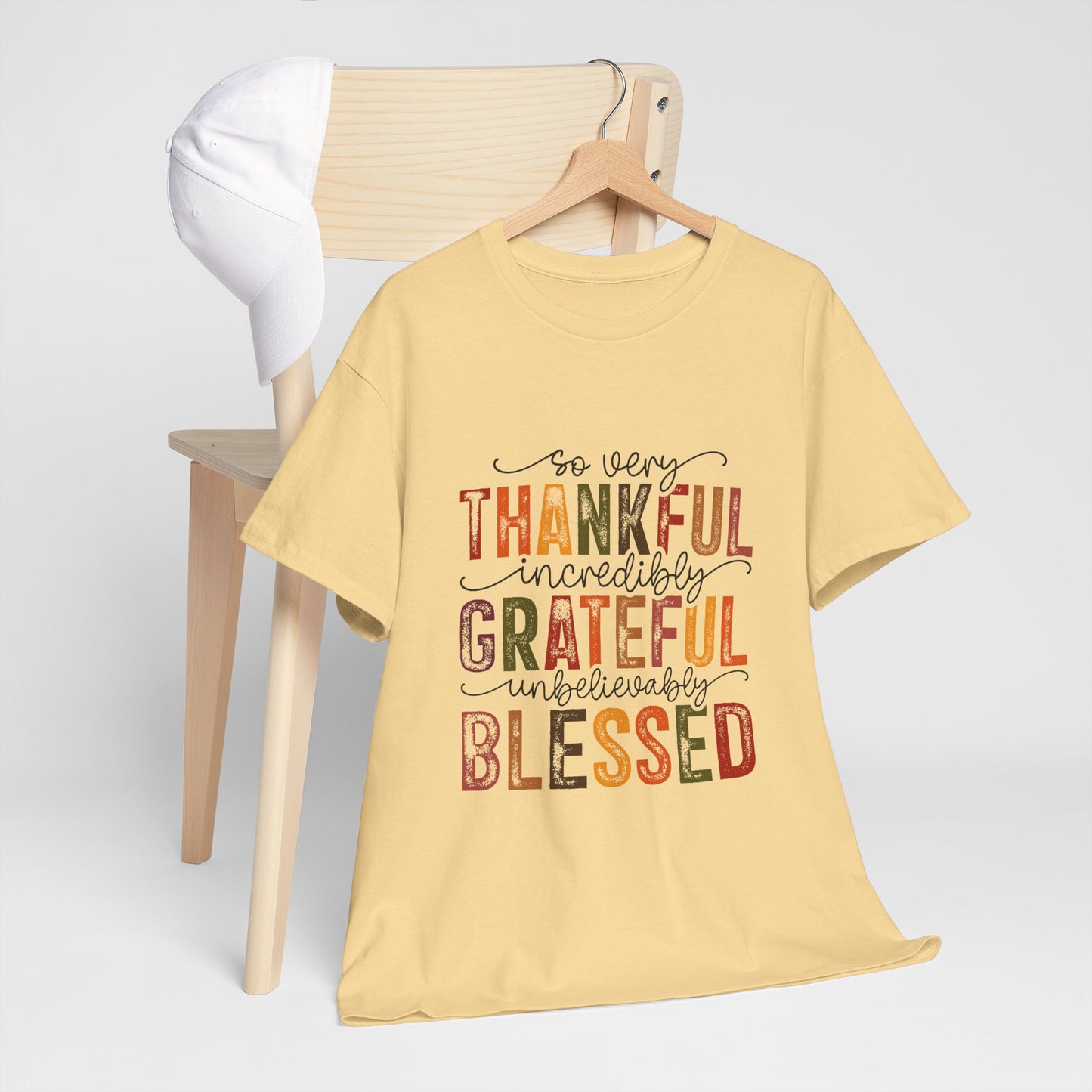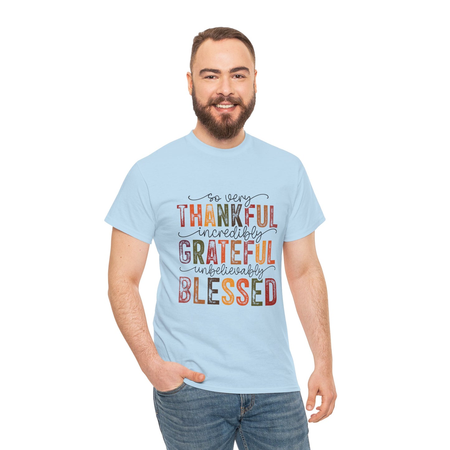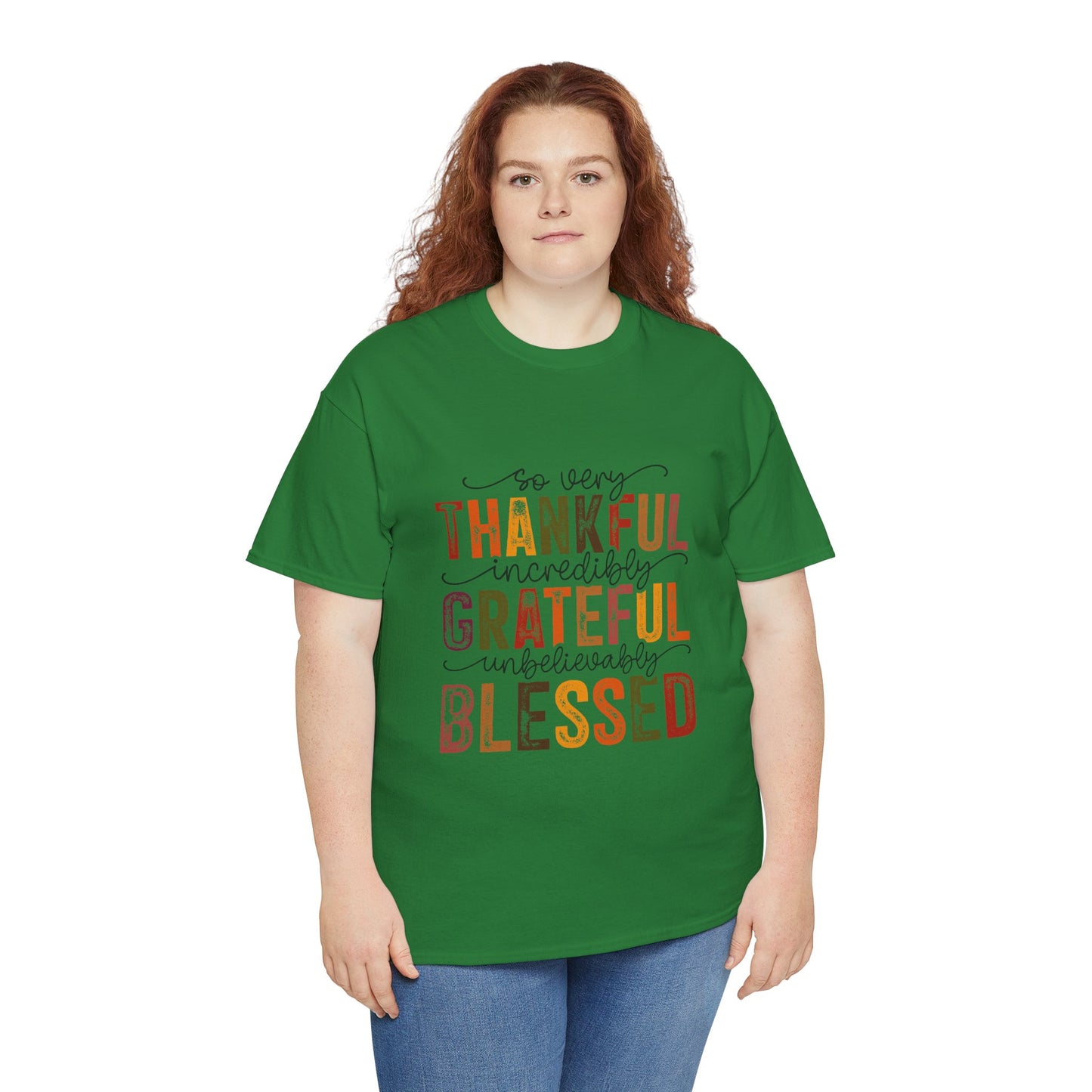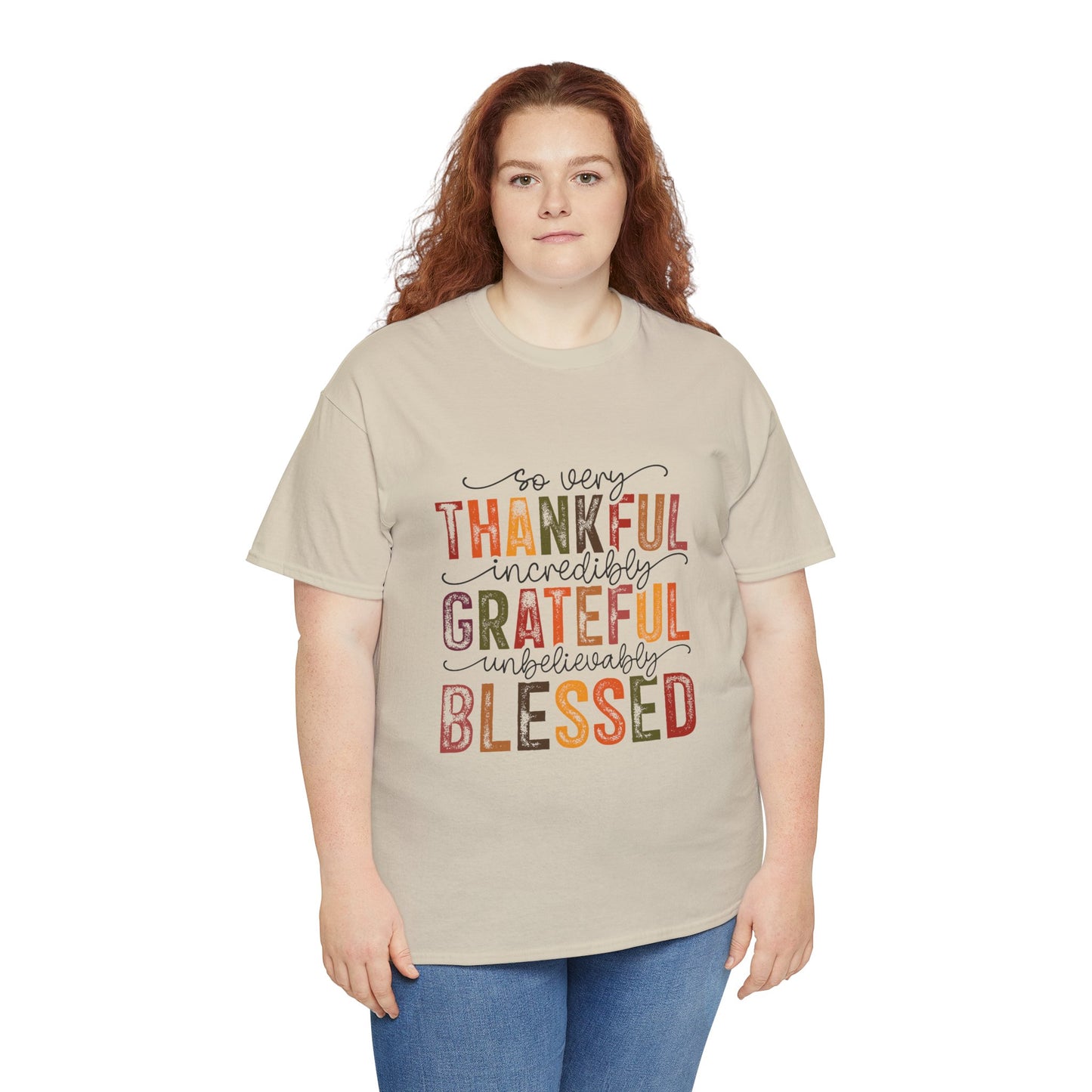 Thankful Grateful Blessed Unisex Heavy Cotton Tee - Thanksgiving Distressed Graphic T-Shirt