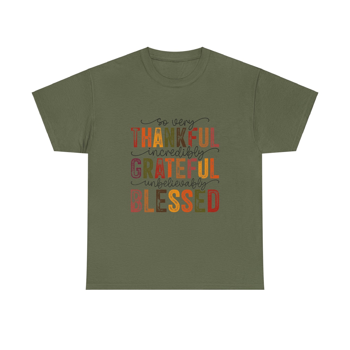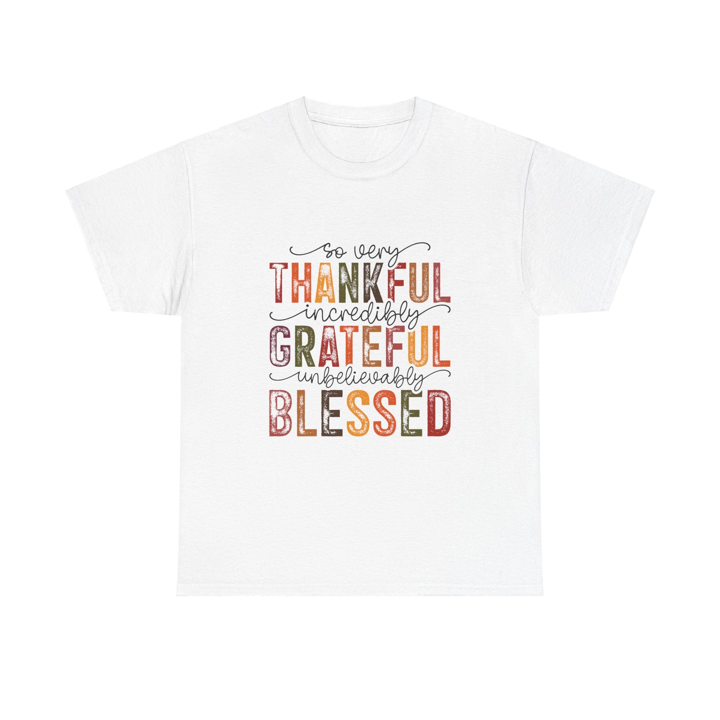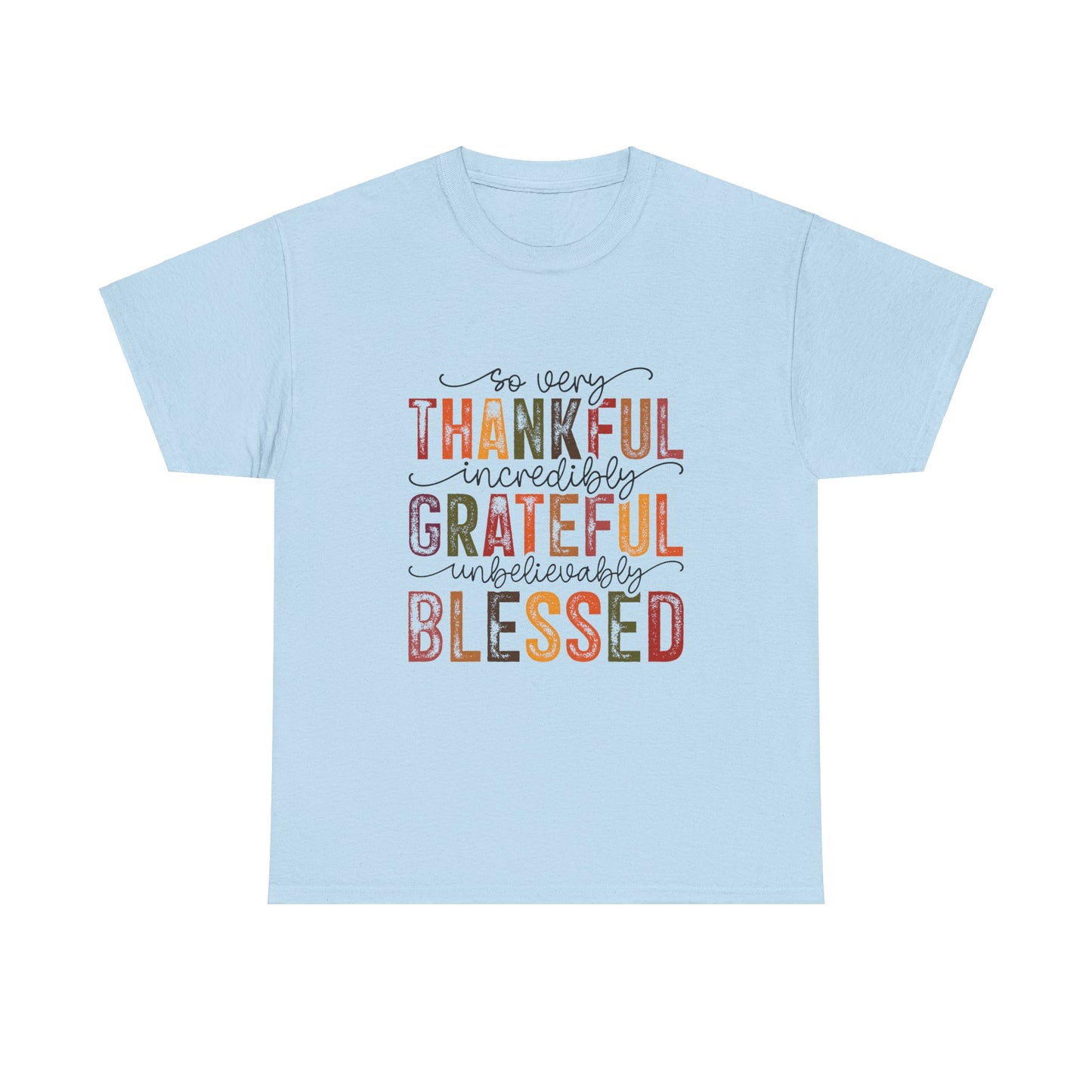 Thankful Grateful Blessed Unisex Heavy Cotton Tee - Thanksgiving Distressed Graphic T-Shirt