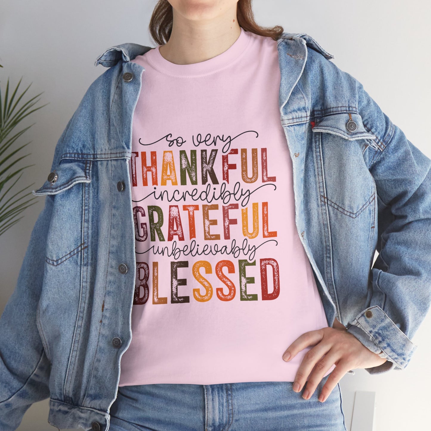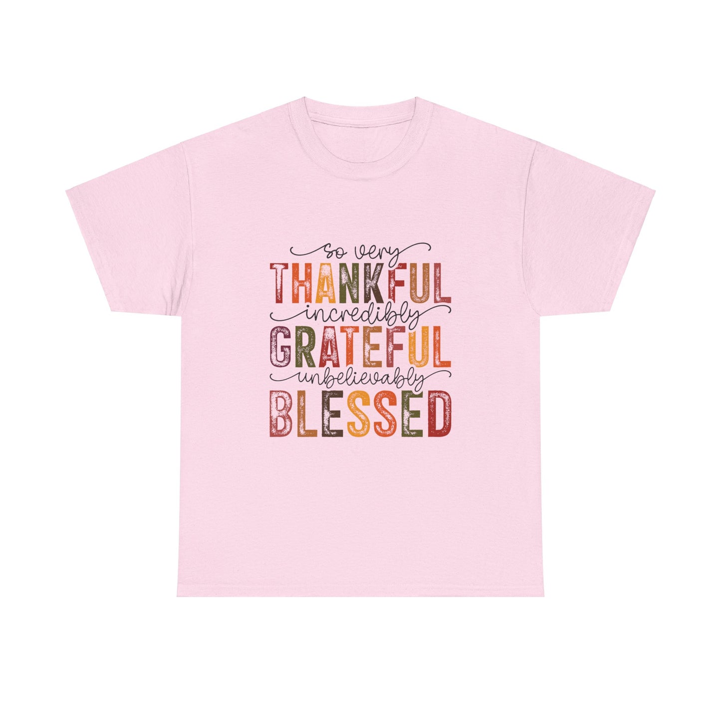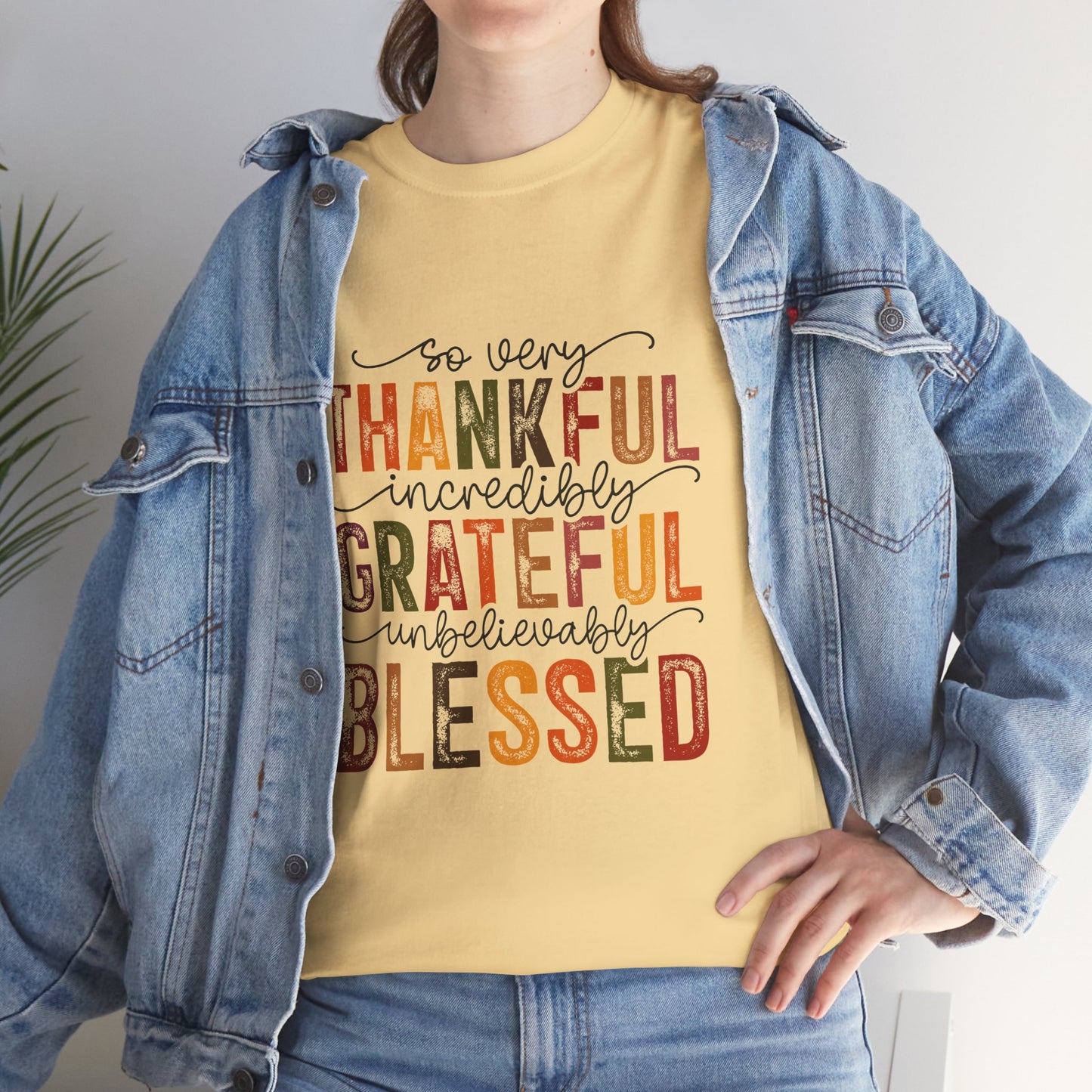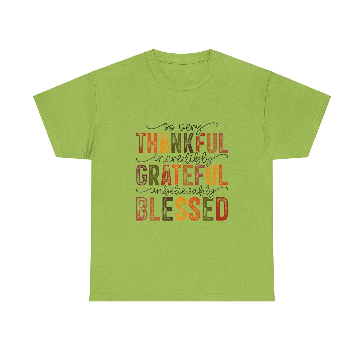 Thankful Grateful Blessed Unisex Heavy Cotton Tee - Thanksgiving Distressed Graphic T-Shirt