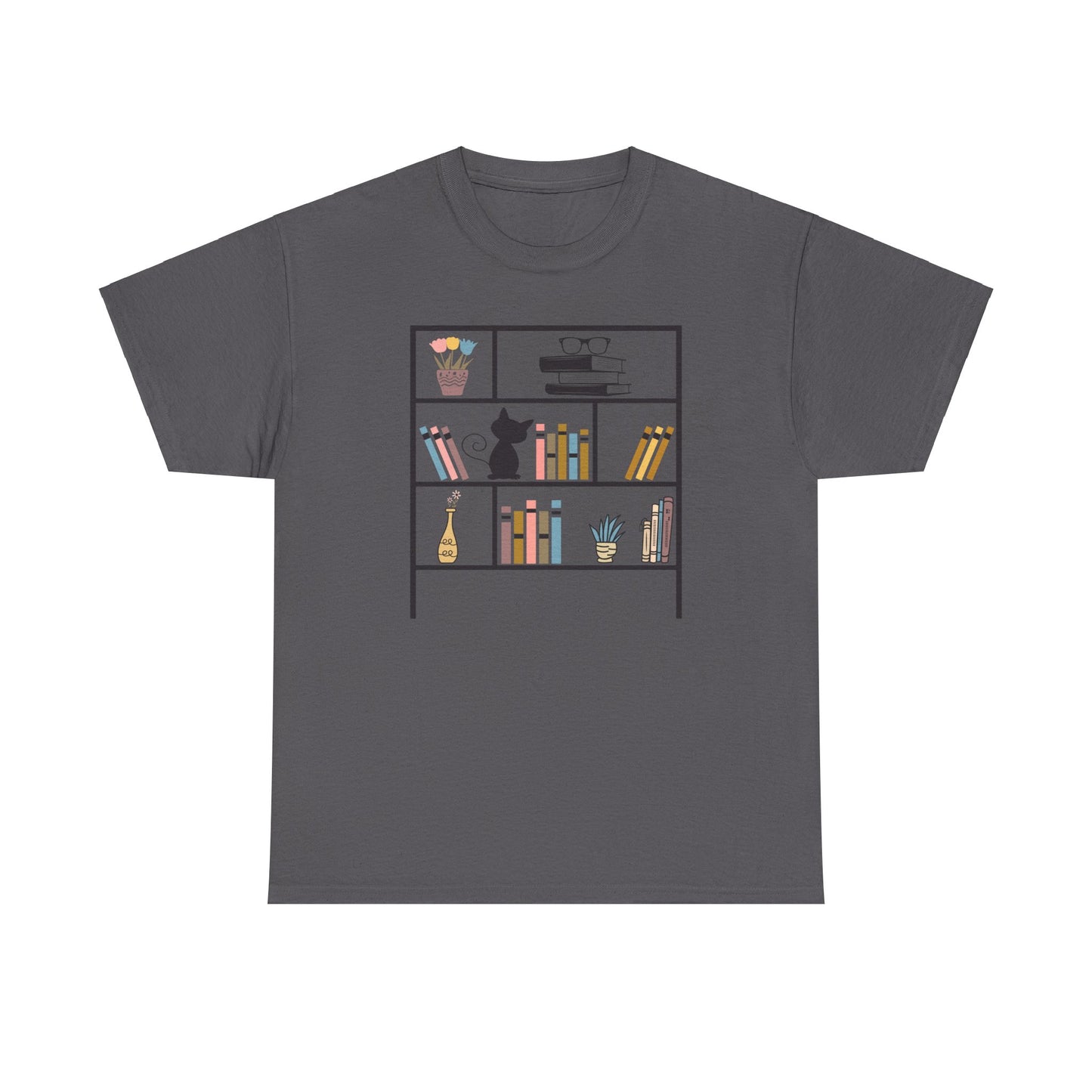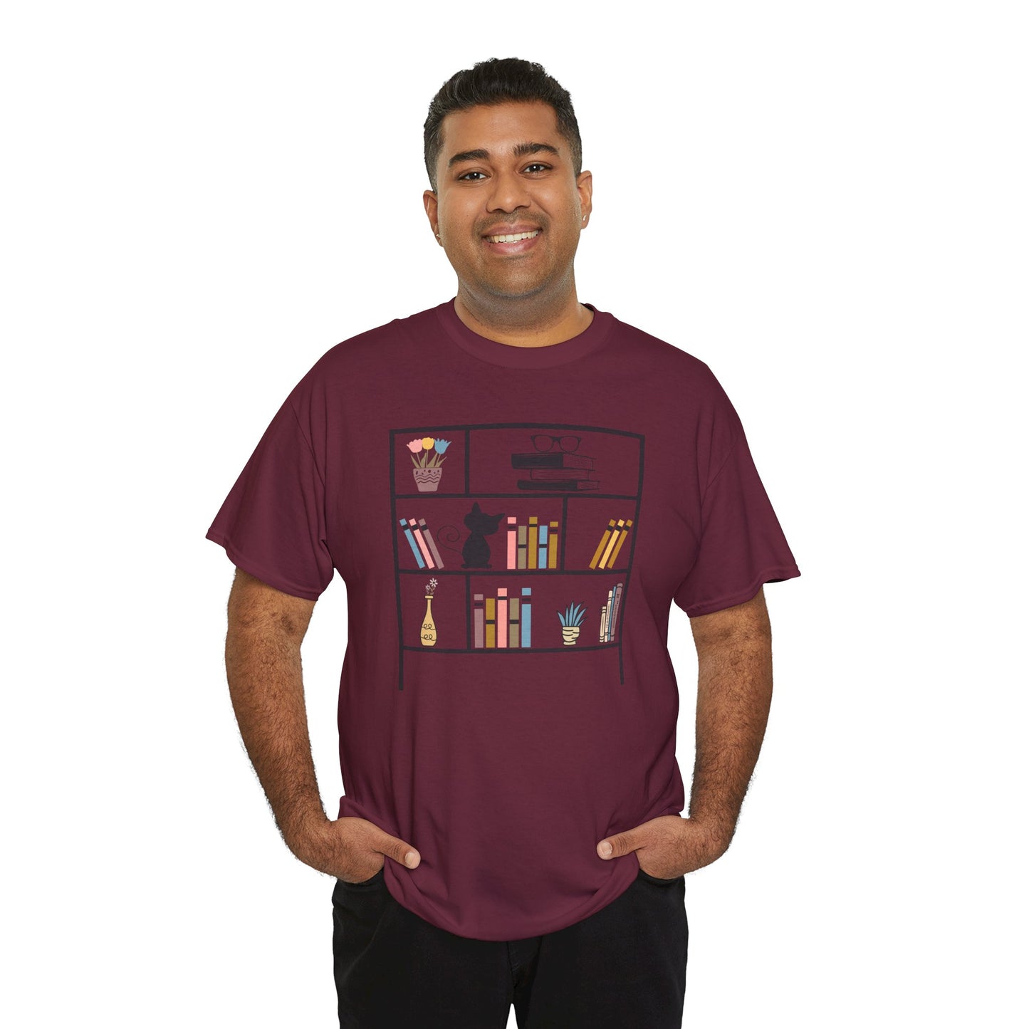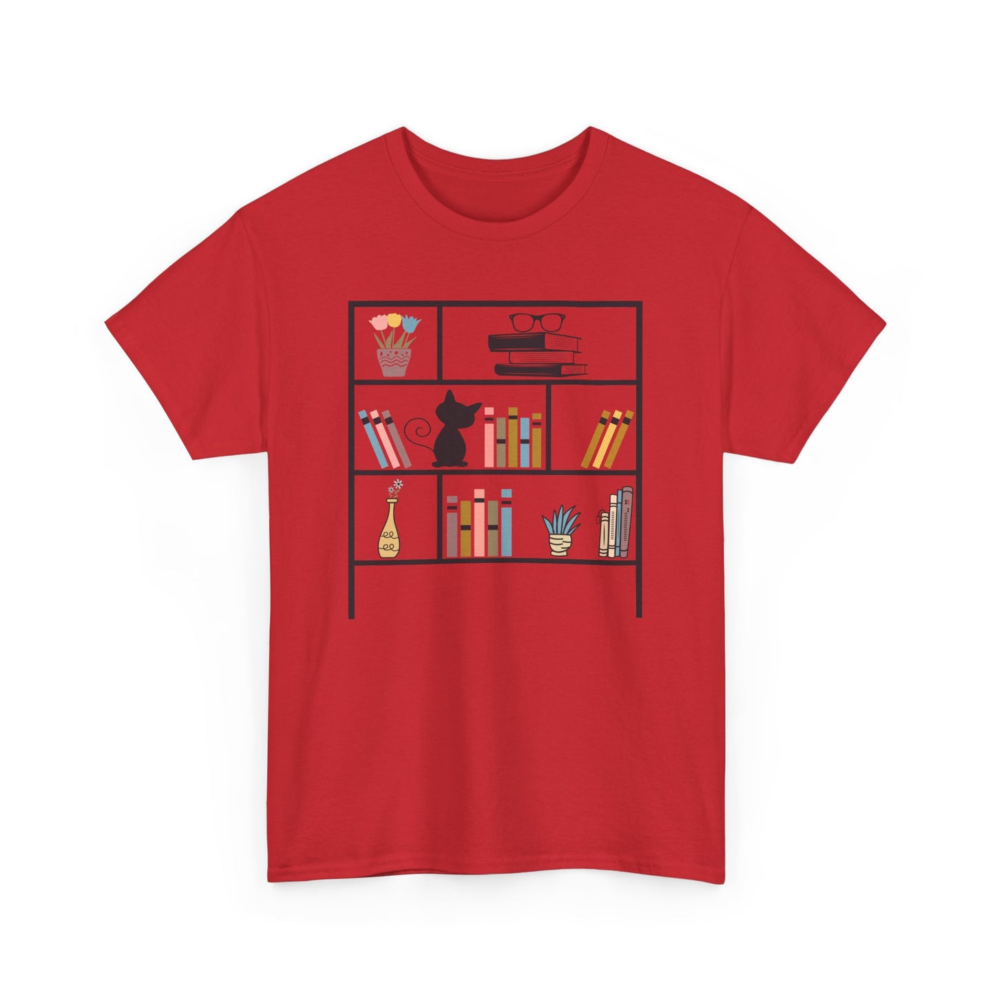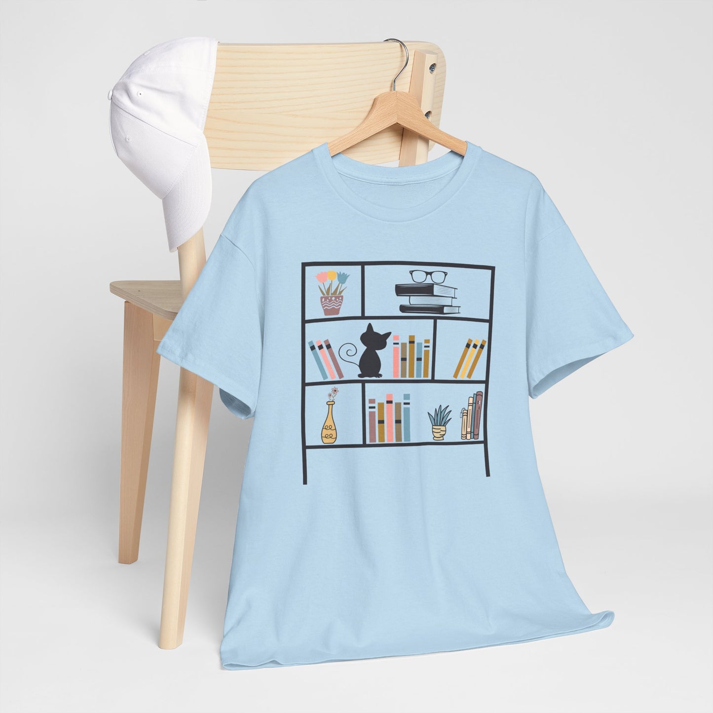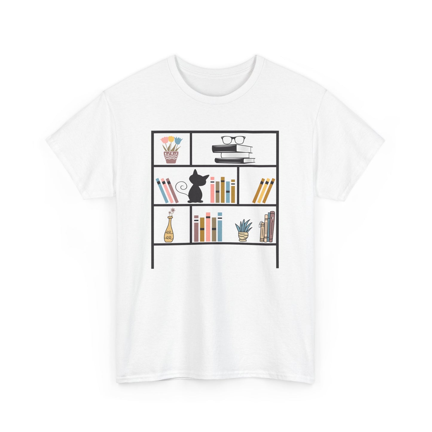 Unisex Heavy Cotton Tee - Bookshelf for books and cat