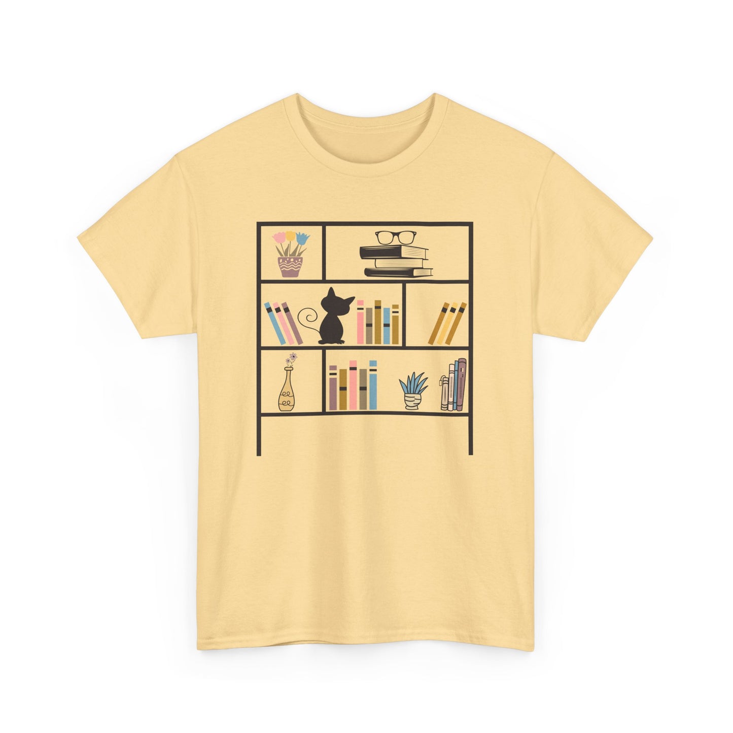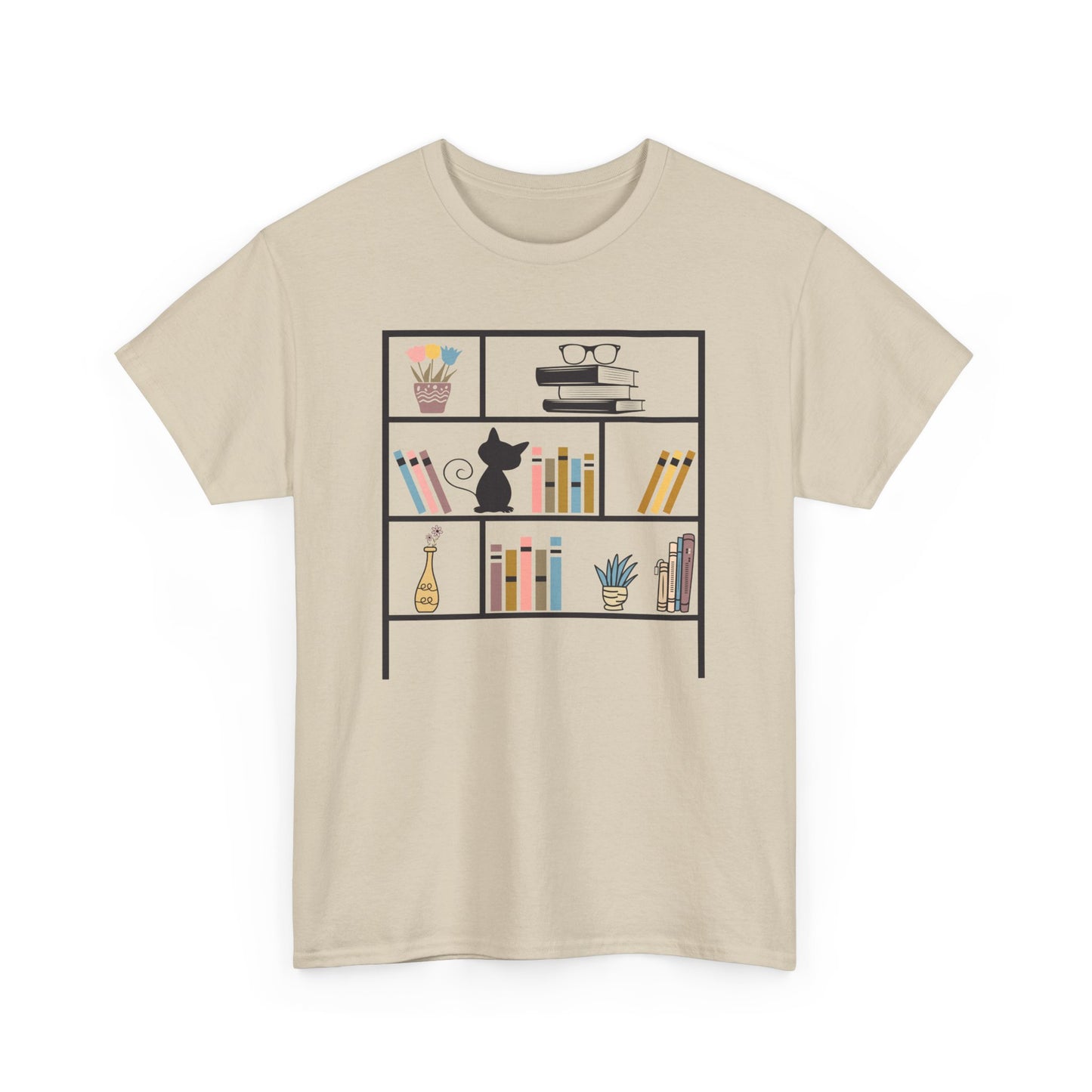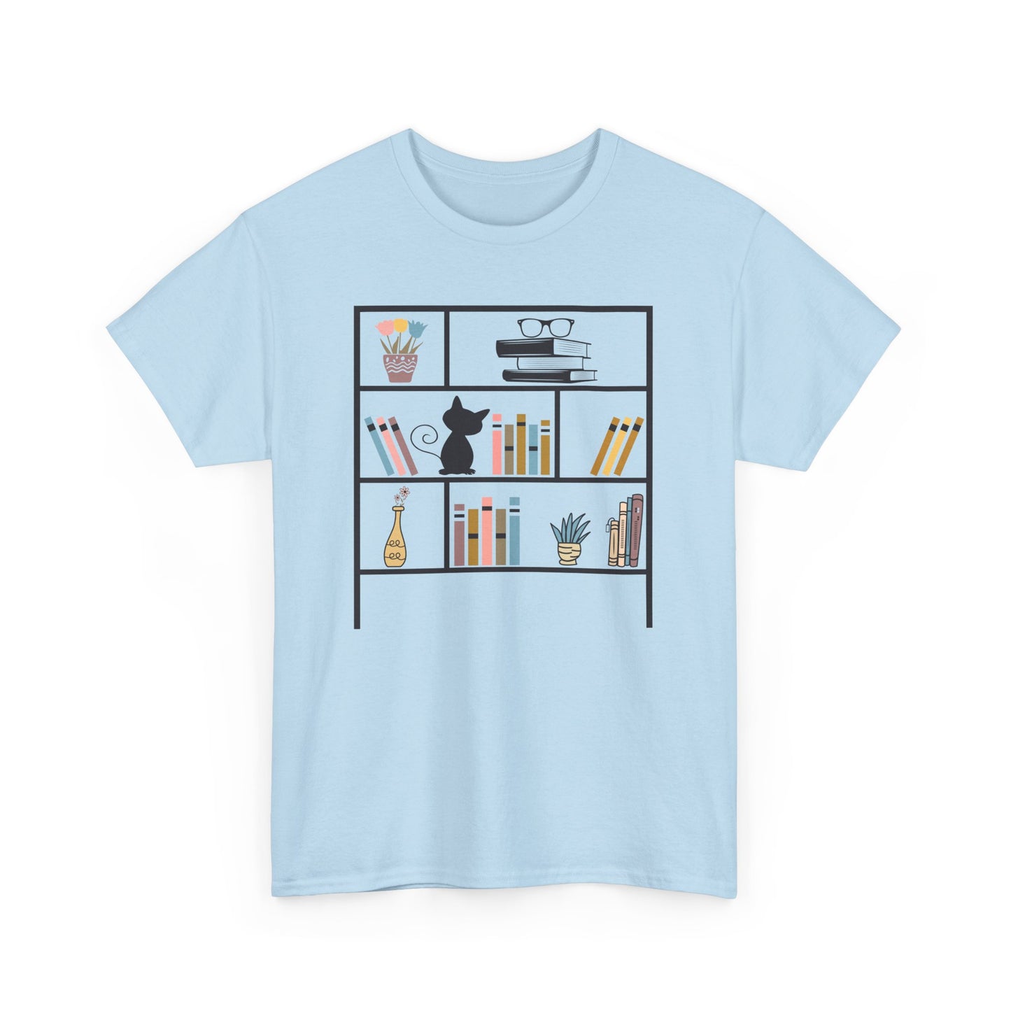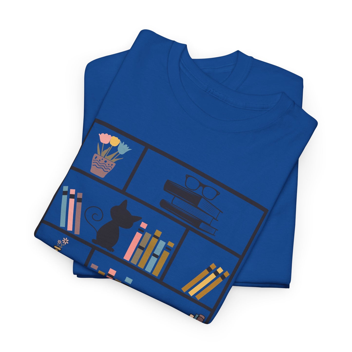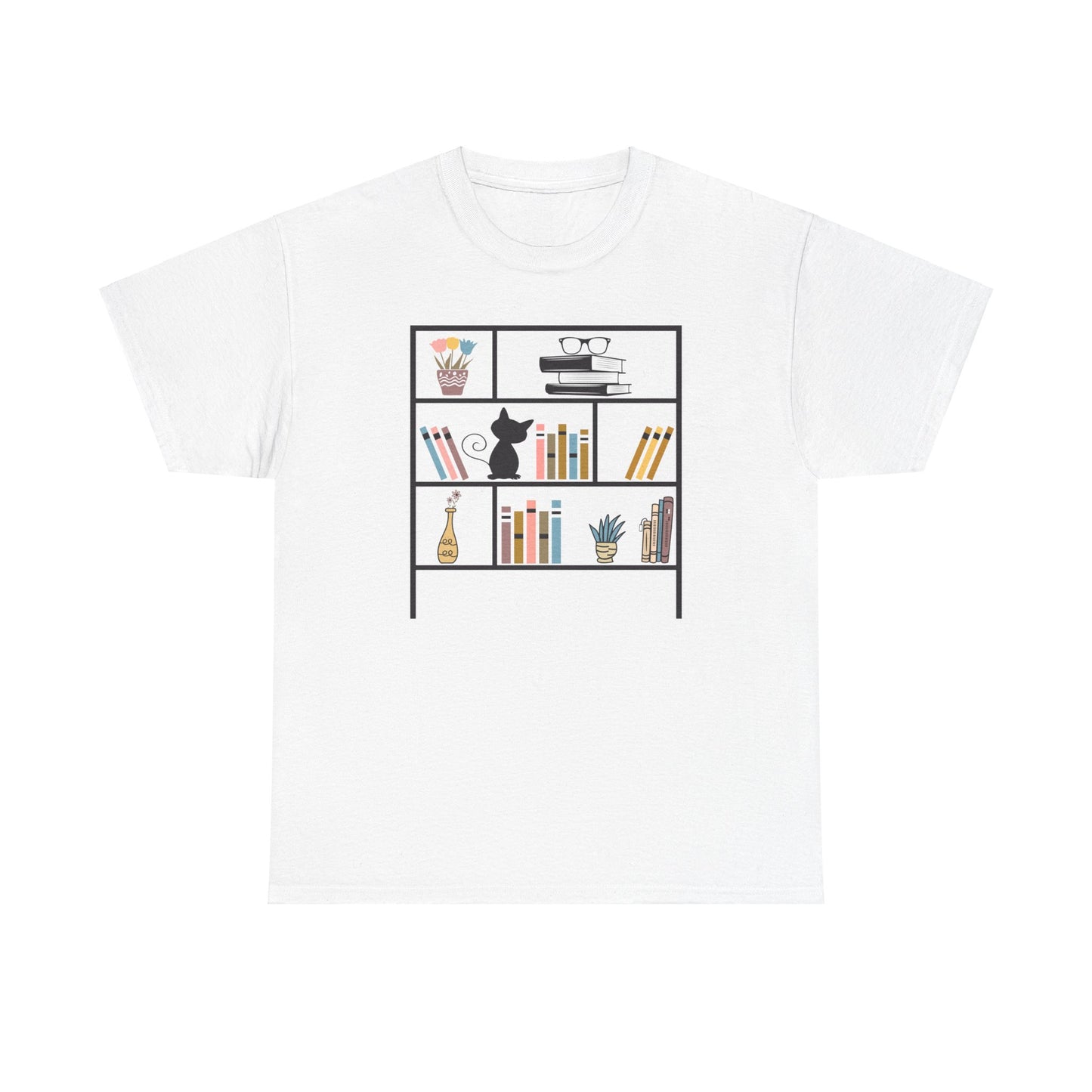Unisex Heavy Cotton Tee - Bookshelf for books and cat