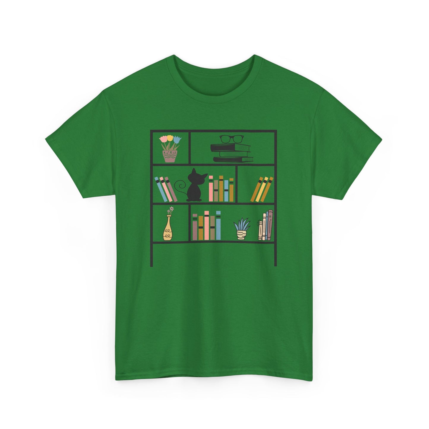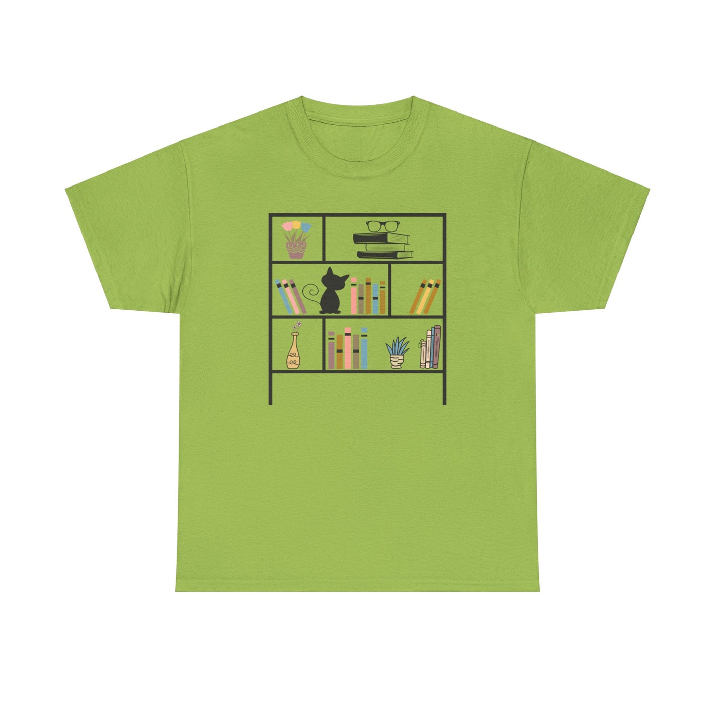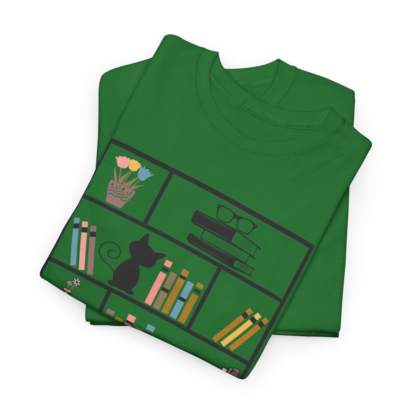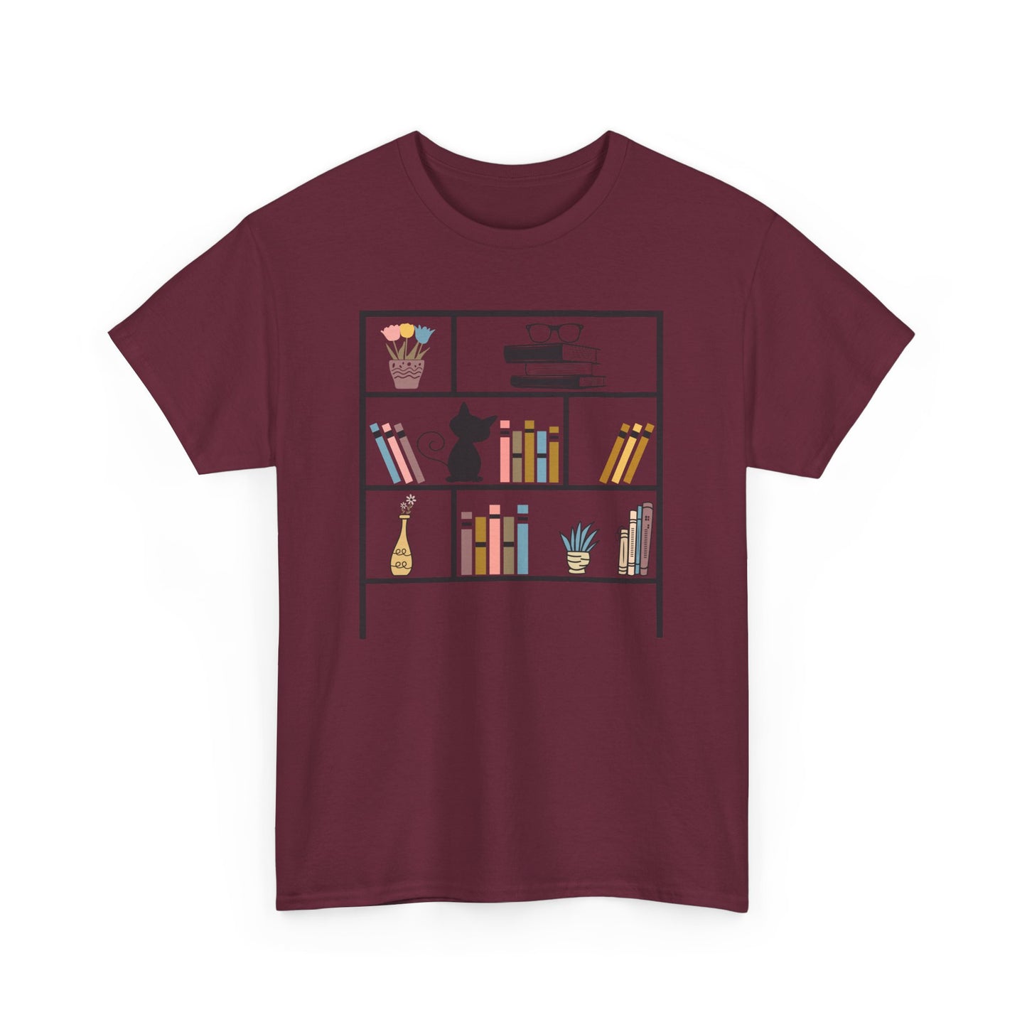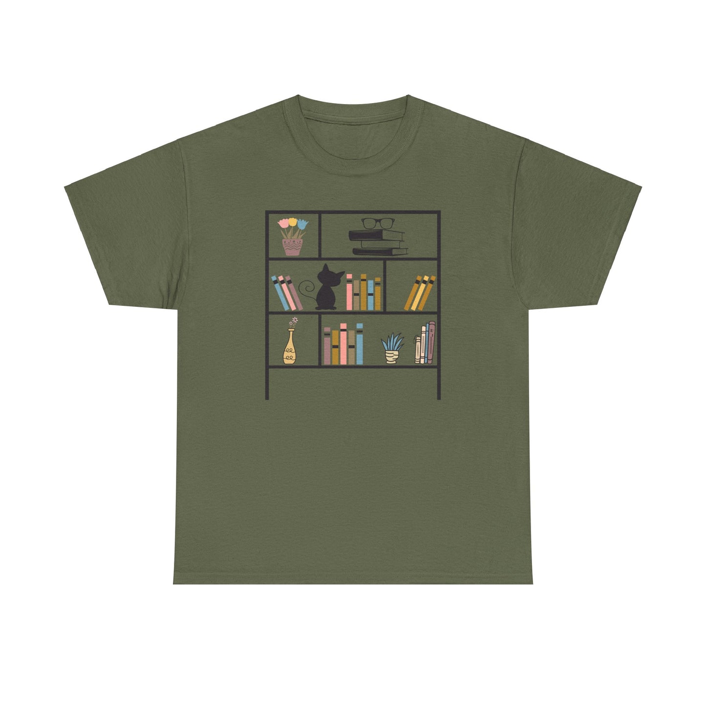 Unisex Heavy Cotton Tee - Bookshelf for books and cat